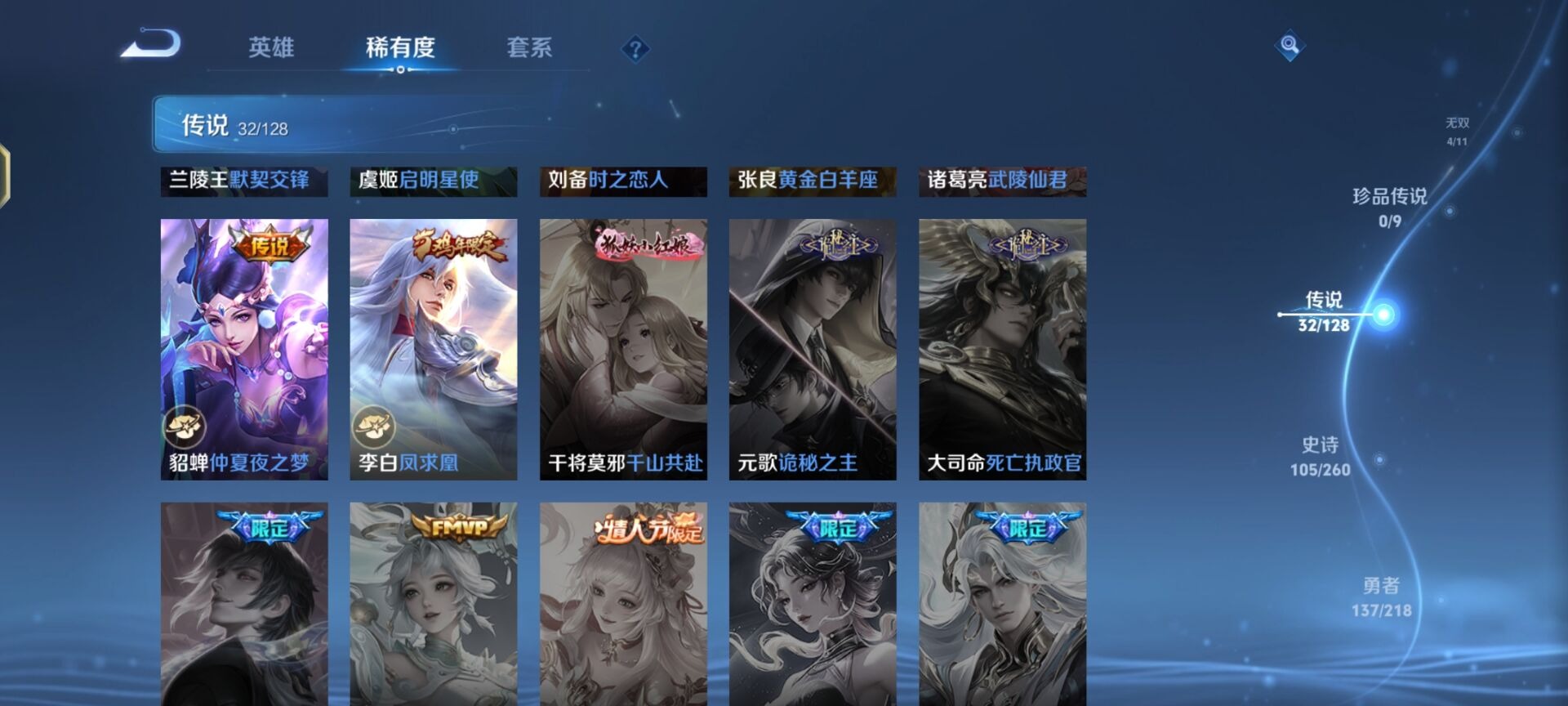 - PX_2093960-贵族8/皮肤252/典藏1/传说15/史诗79/英雄124/幻阙歌/曜器灵螭龙剑/马可波罗怪盗基德/嫦娥器灵落星盏/特工战影/云鹰飞将/启明星使/淬星耀世/无双飞将/诗剑行/山海炽霜斩/无限倾心男/浮生妄/妄想实况/鹤归松栖女/时之奇旅大乔/霜月吟/乘龙铭钟鼎/桑启鸣野蒿/澜愿照九州拓/蔡文姬夏日便利店/虞姬夏日便利店/姜子牙天穹之誓/杨戬破阵退雄兵/狄仁杰阴阳师/赵云皇家上