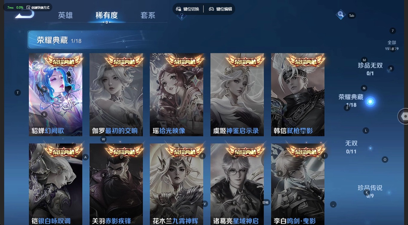 - [11631687]V6 7传说 122英雄 163皮肤 可修改实名 优质装备:黄金射手座,云鹰飞将(小将军),黄金白羊座,地狱之眼,时之恋人-刘备(电焊工) 传说皮:幻光神枪 珍宝阁皮:胡桃夹子 限定皮:逐霄战戟,陌上桑,鸣野蒿,遇见飞天,李小龙,山海·玄木吟(马可年限) 史诗皮:器灵·浮梦炉,星界战将,石田雨龙,撼地雄心,破空之剑,蔬乡物语(鲁班七号),紫霞仙子,黄金分割率,特工魅影,江河有灵,蒙恬荣光圣徽,冰冠公主,电玩·爆裂旋风,时之恋人-孙尚香,乱世虎臣,摇滚巨星,水果甜心,绅士熊喵,幽灵船长,地狱岩魂,乘风破浪,逐浪之夏,水晶猎龙者,箭羽风息,金属风暴,鹰眼统帅,魅力维加斯,黎明之约,赏金猎手,无心
