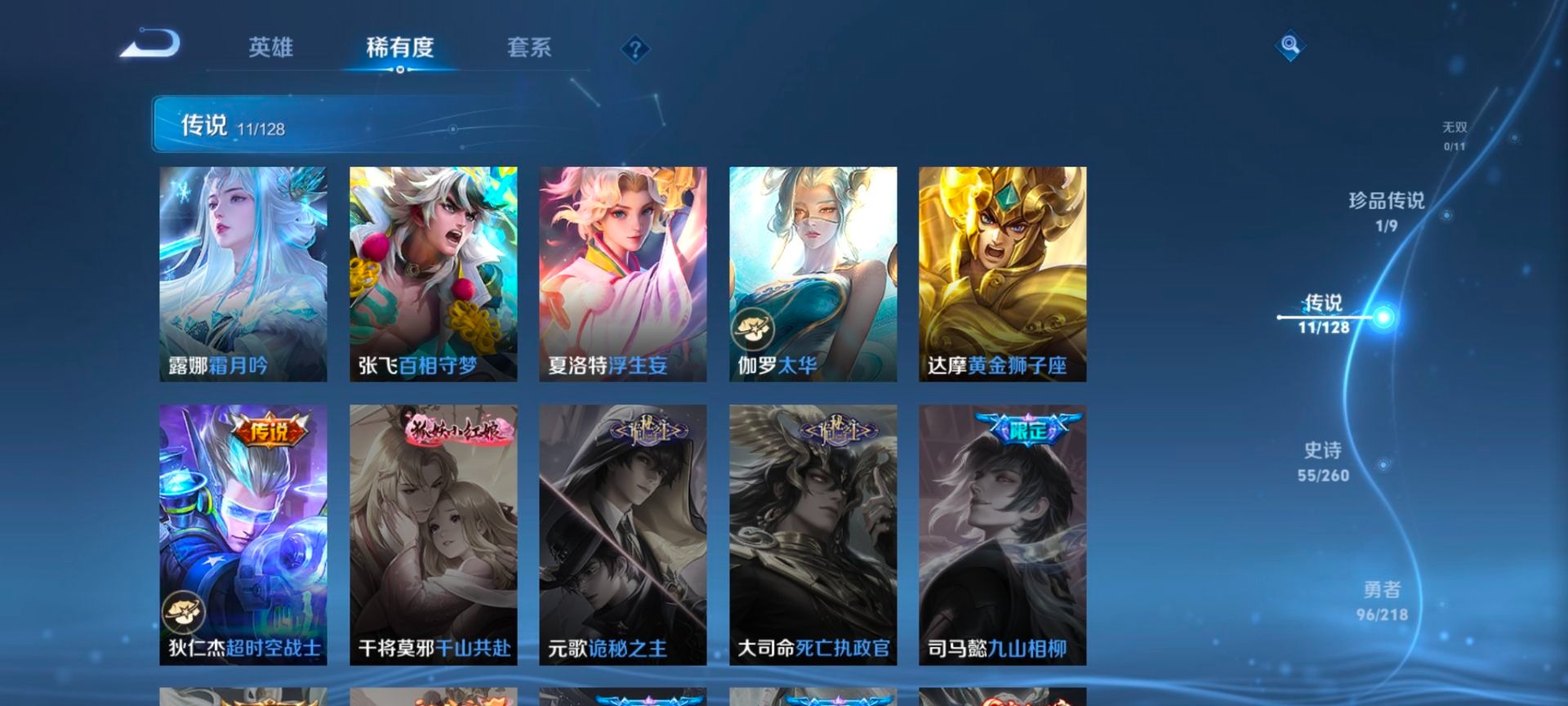 - [12024820]V8 1典藏 2珍品传说 11传说 126英雄 334皮肤 典藏英雄武则天 可修改实名 优质装备:鸣剑·曳影,江户川柯南,怪盗基德,云鹰飞将(小将军),地狱火,地狱之眼,乞巧织情,电玩·雷克斯,涂山容容 传说皮:幻光神枪 珍宝阁皮:蔷薇恋人,女武神 限定皮:愿照·岁时盈(虞姬年限),愿照·众生和(妲己年限),逐霄战戟,鸣野蒿,至尊宝,时雨天司(水龙头),遇见飞天,五谷丰年,游园惊梦,梁祝,逐梦之星,天狼溯光者,辉光之辰,大圣娶亲 史诗皮:鸭鸭历险记-刘禅,化蝶舞,灵蛊蚀心,星界战将,龙之律动,石田雨龙,百相守梦-周瑜,茶境仙,破空之剑,蒙犽顽岩魄,蔬乡物语(鲁班七号),百相守梦-百里守约,百相守梦-黄忠,织梦人,遇见神鹿,紫霞仙子,电玩小子(小书包),黄金分割率,特工魅影,千年之狐,江河有灵,魅语,百解令(蒙犽),高渐离燃音魔法,蒙恬荣光圣徽,冰冠公主,青蛇,偶像歌手,电玩·兔顽号,电玩·爆裂旋风,龙骑士(小龙虾),末日机甲-吕布,猫狗日记-孙策,猫狗日记-大乔,时之恋人-孙尚香,乱世虎臣,节奏热浪,女仆咖啡,摇滚巨星,水果甜心,绅士熊喵,天才门将,星夜王子,心灵骇客,功夫厨神,德古拉伯爵,暗隐猎兽者,幽灵船长,鬼剑武藏,心灵战警,乐园奇幻夜,天秀·启明,地狱岩魂,纤云弄巧,繁星吟游(呼啦呼啦),拒霜思,缤纷独角兽,乘风破浪,逐浪之夏,水晶猎龙者,曙光守护者,箭羽风息,金属风暴,圣诞狂欢,圣诞恋歌,鹰眼统帅,暗夜贵公子,魅力维加斯,黎明之约,未来纪元-赵云