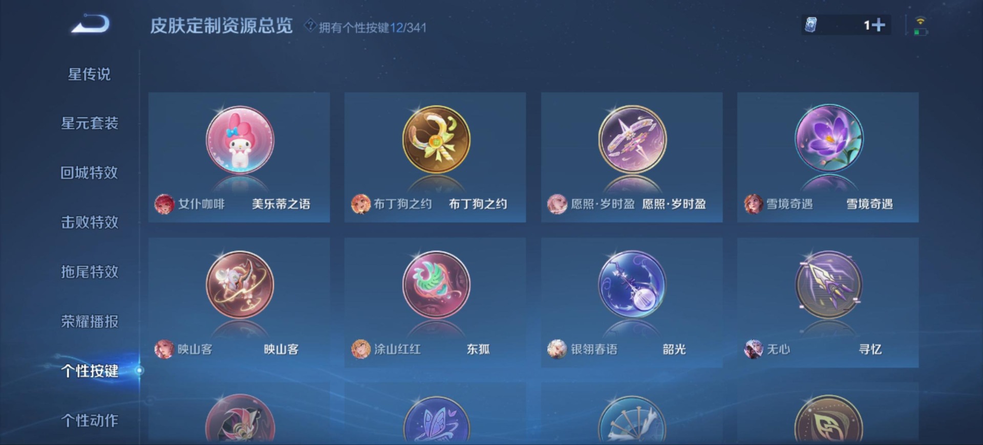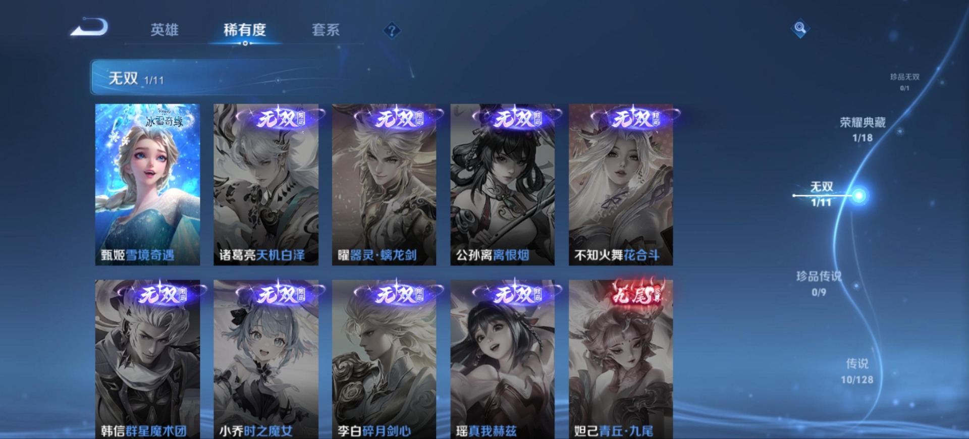 不知火舞绯月行,杨玉环寅虎·心曲,公孙离玉兔公主,西施至美·乘鲤谣,桑启鸣野蒿,蔡文姬愿照·福禄聚,虞姬愿照·岁时盈,王昭君映山客
