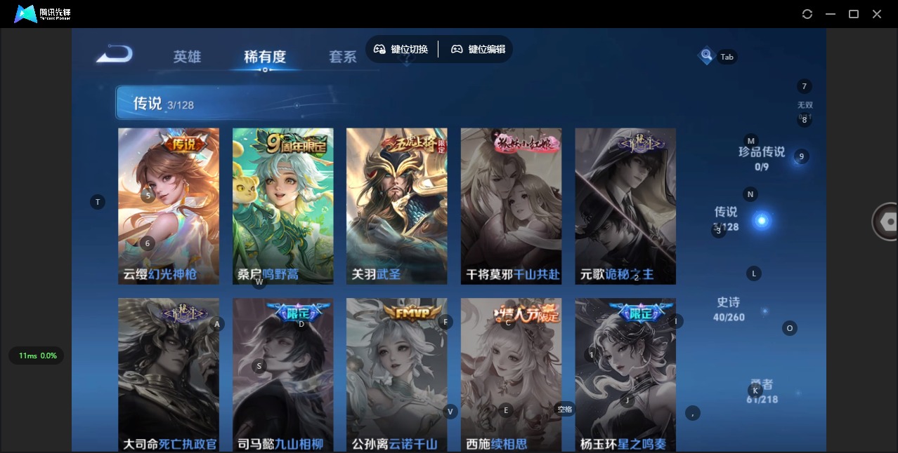 - [11388080]V7 1典藏 10传说 124英雄 235皮肤 可修改实名 优质装备:全息碎影(猴子典藏),冠军飞将,末日机甲-孙尚香(绿蚂蚱),地狱火,仲夏夜之梦(大飞蛾),超时空战士-狄仁杰 珍宝阁皮:优雅恋人 限定皮:白虎志(电光耗子),凤求凰(白切鸡),太华(伽罗年限),梅西,武陵仙君(小桃花),神威(电光马子),遇见飞天,游园惊梦,梁祝,御风骁将(吕布年限),龙胆,逐梦之翼,李小龙,逐梦之影,朱雀志(守约年限),永曜之星,辉光之辰,如梦令-嫦娥,如梦令-后羿,一生所爱,大圣娶亲,寅虎·心曲(虎婆) 史诗皮:化蝶舞,龙之律动,藏狐·褐绒,茶境仙,紫霞仙子,苍穹之光,电玩小子(小书包),黄金分割率,特工魅影,千年之狐,江河有灵,蒙恬荣光圣徽,无限星赏官,电玩·爆裂旋风,乱世虎臣,摇滚巨星,水果甜心,星夜王子,德古拉伯爵,暗隐猎兽者,鬼剑武藏,乐园奇幻夜,舞动绿茵,地狱岩魂,纤云弄巧,繁星吟游(呼啦呼啦),拒霜思,乘风破浪,逐浪之夏,水晶猎龙者,曙光守护者,金属风暴,原初追逐者,圣诞狂欢,圣诞恋歌,鹰眼统帅,暗夜贵公子,魅力维加斯,黎明之约,无心,未来纪元-赵云