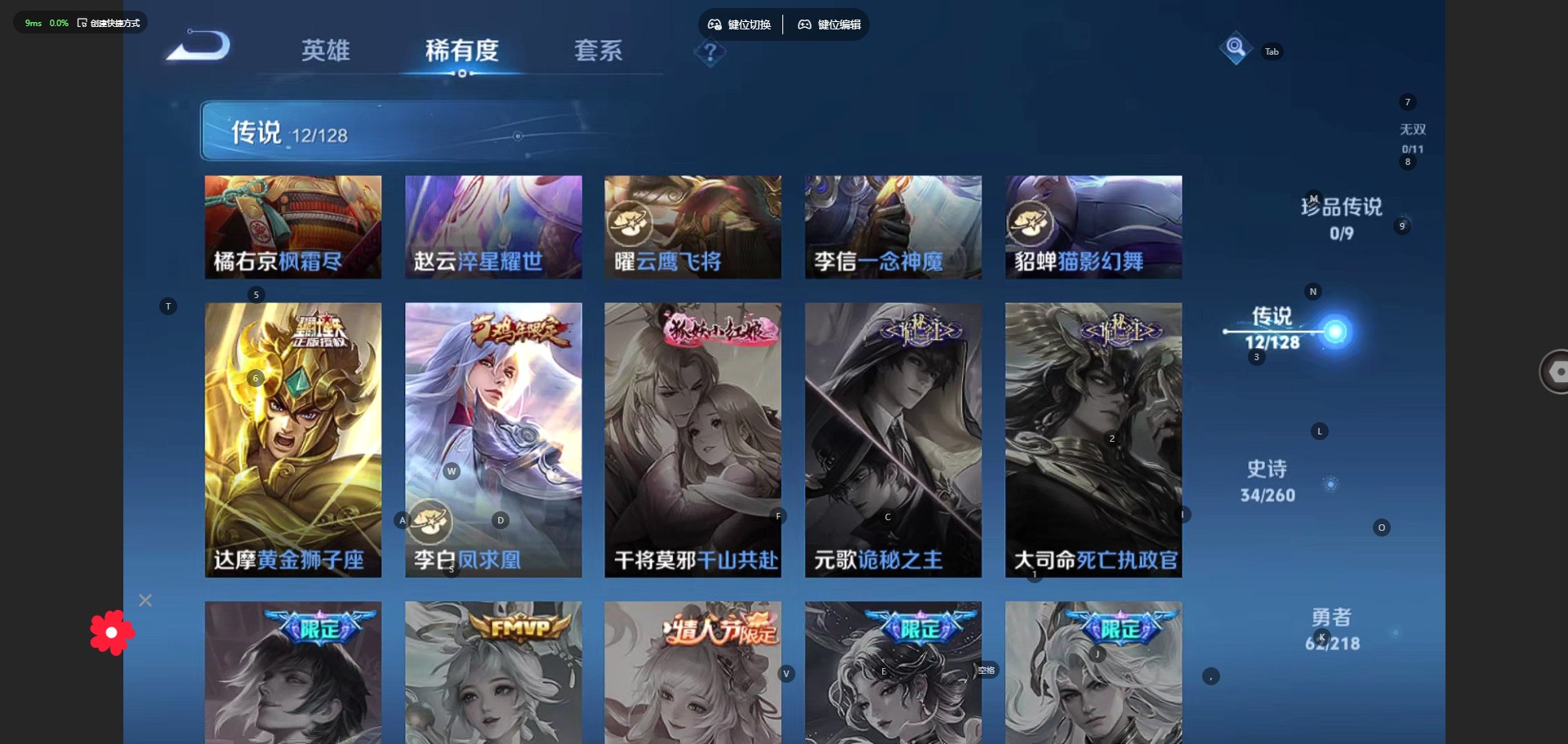 - PX_2085992-[v9 很快v10!!!具体看图 嘎嘎质号]贵族等级: V9 英雄数: 125 皮肤数: 378 荣耀水晶: 鸣剑·曳影,九霄神辉 珍品传说: 怪盗基德 传说皮: 黄金狮子座,黄金射手座,冠军飞将,云鹰飞将,久胜战神,炽阳神光,一念神魔,末日机甲-孙尚香,仲夏夜之梦,零号·赤焰,地狱之眼,李逍遥,乞巧织情,游龙清影,淬星耀世,末日机甲-孙策,无双飞将,碎云,山海·苍雷引,画中