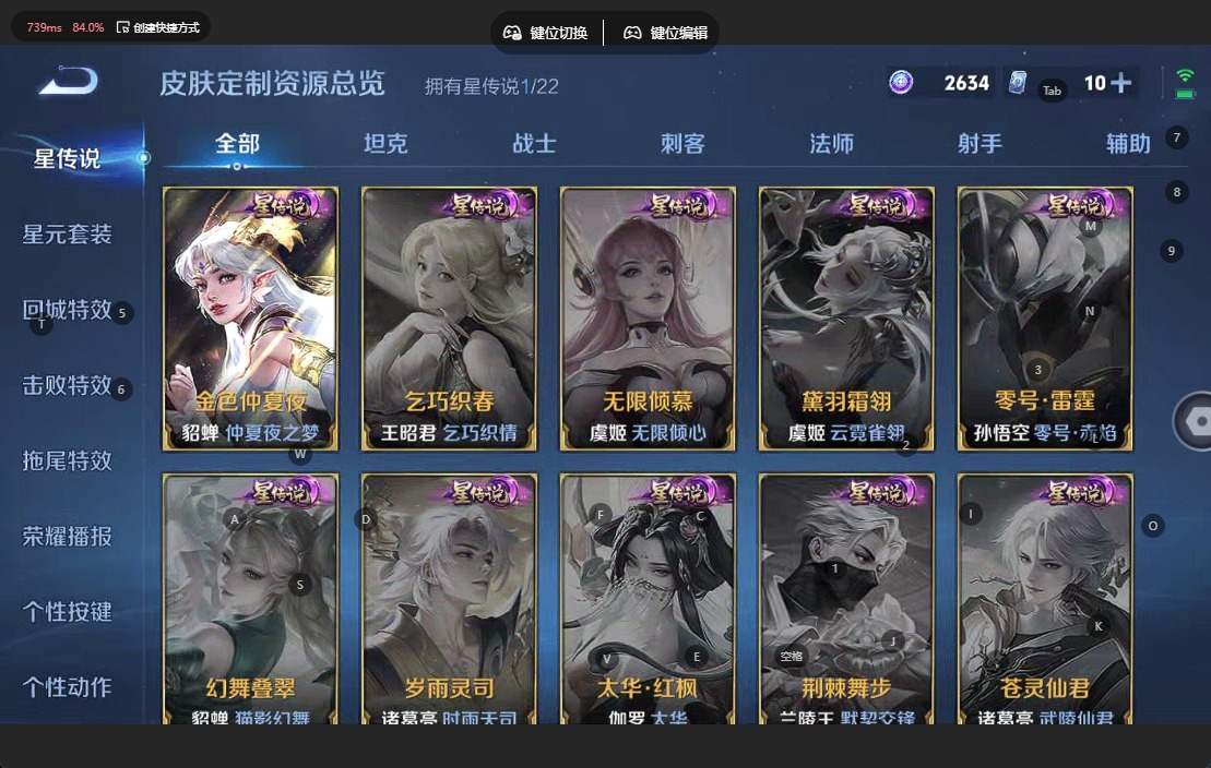 铠青龙志,后羿辉光之辰,周瑜真爱至上,诸葛亮时雨天司,杨玉环寅虎·心曲,裴擒虎寅虎·赤拳,上官婉儿梁祝,李白诗剑行,女娲补天,孙悟空大圣娶亲,孙悟空至尊宝,马超神威,关羽武圣,关羽冰锋战神