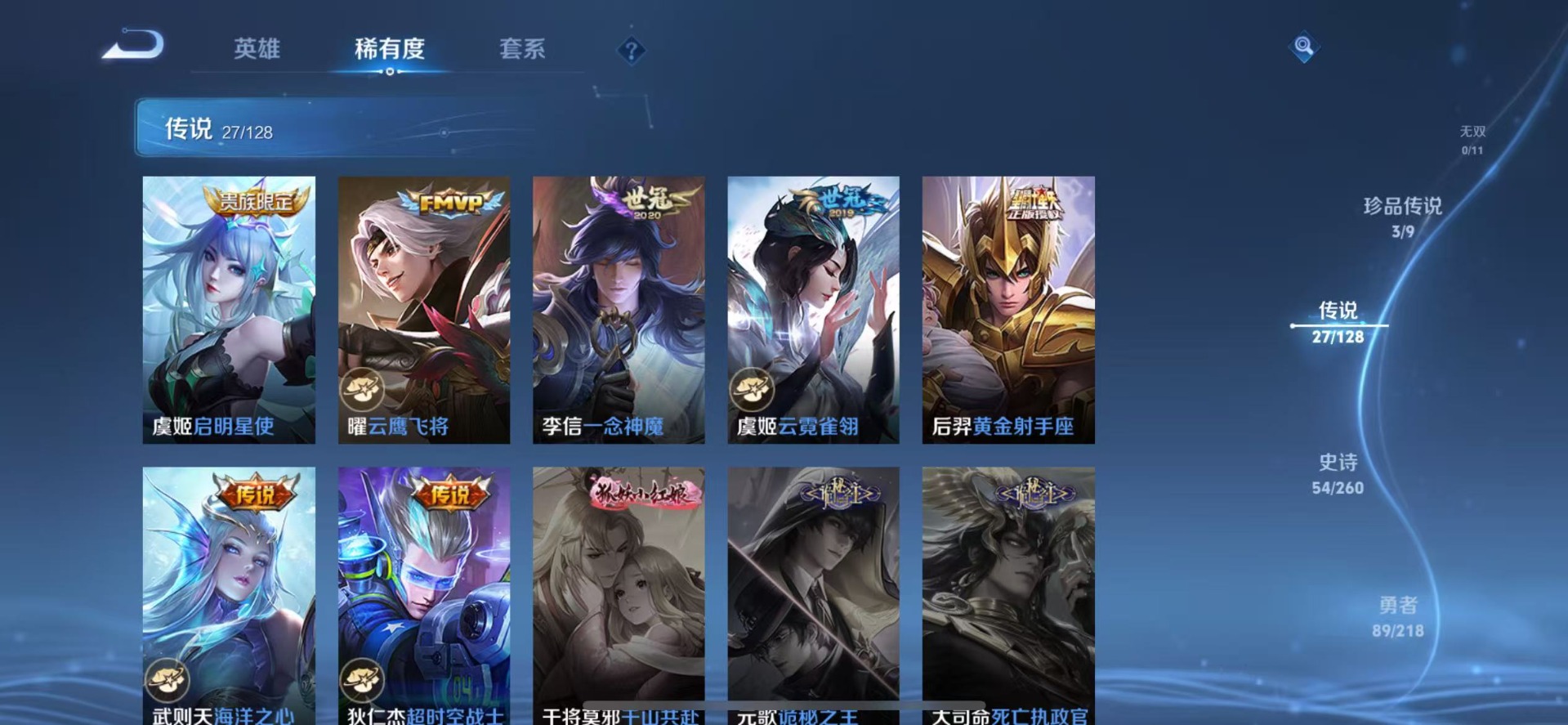 - PX_2063934-安卓Q 【可二次】 英雄数量:122 皮肤数量:237 贵族等级:贵族V8 无双限定1 荣耀典藏1 珍品传说1 传说品质21 史诗品质40器灵·螭龙剑 神鉴启示录 时之奇旅孙策 愿照·千秋盛 诗剑行 记忆之芯 一念神魔 云鹰飞将 无双飞将 幻光神枪 祥瑞亨通 愿照·山河定 愿照·九州拓 炽阳神光 浮生妄 冥王哈迪斯 怒海麟威 启明星使 地狱之眼 时之恋人男 超时空战士男 鸣野