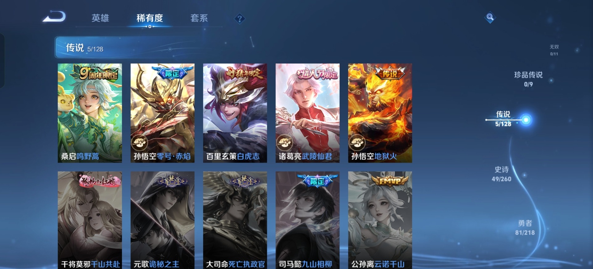 后羿如梦令,裴擒虎李小龙,上官婉儿梁祝,上官婉儿天狼绘梦者,桑启鸣野蒿,猪八戒猪悟能,孙悟空孙行者,孙悟空大圣娶亲,孙悟空至尊宝,百里玄策白虎志,马超神威