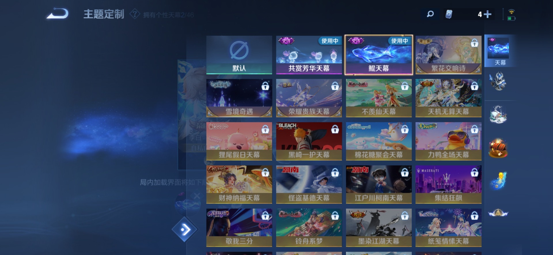 刘备时之恋人,李信一念神魔,孙策末日机甲,孙策挚爱之约,达摩黄金狮子座,露娜霜月吟,吕布遇见神鼓,镜炽阳神光,宫本武藏惊梅引,西施游龙清影,狄仁杰夜礼服假面,孙悟空零号·赤焰,曜李逍遥