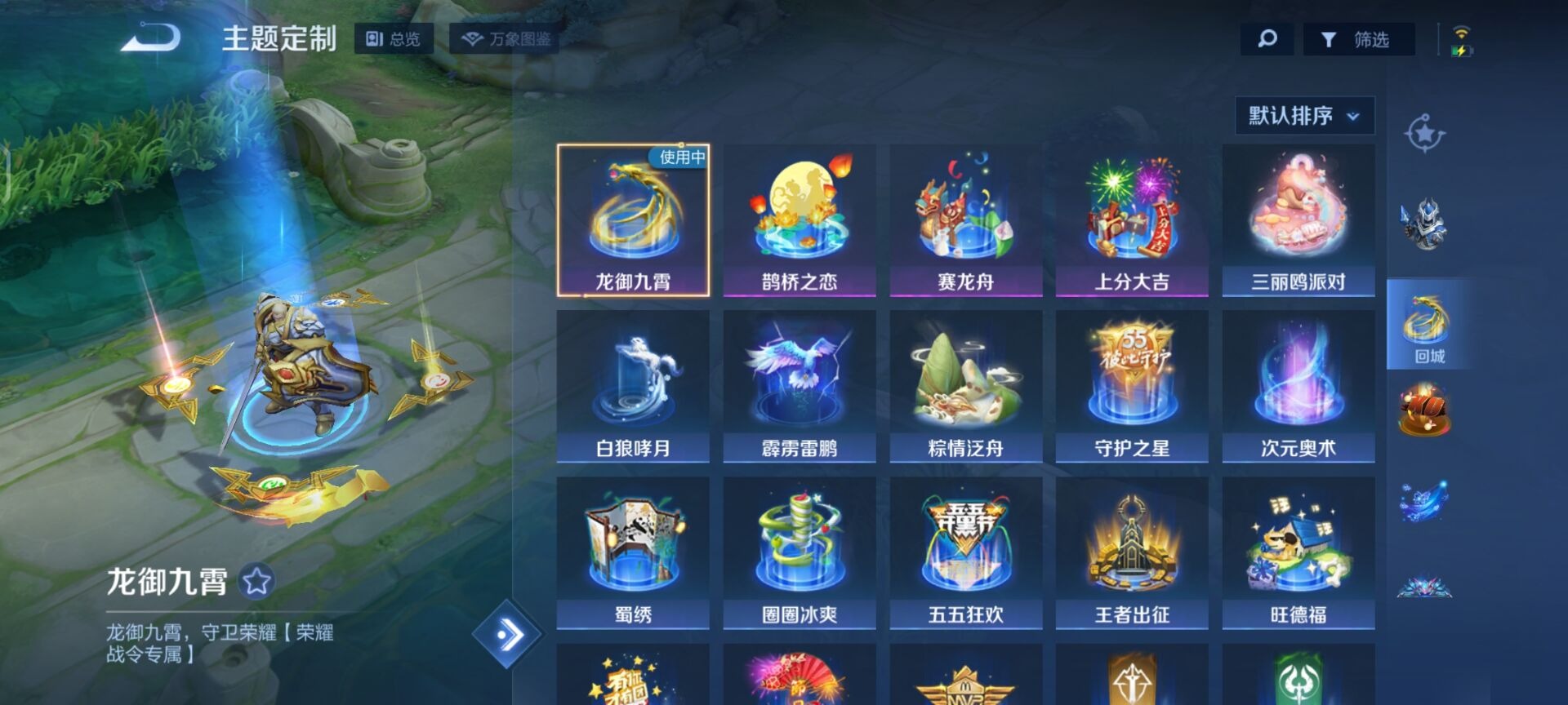 夏侯惇朔风刀,老夫子醍醐杖,沈梦溪星空之诺,沈梦溪大漠名商,盾山御銮,苏烈千军破阵,典韦穷奇,典韦蓝屏警告,达摩沙漠行僧,牛魔御旌,鲁班七号狮舞东方,吕布猎兽之王,兰陵王金庭之子,鲁班大师探海日志,明世隐疑决卦,鬼谷子原初探秘者,女娲朔望之晖,桑启海盐诗旅,狄仁杰万华元夜,嬴政白昼王子,程咬金演武夺筹,李元芳银河之约,弈星混沌棋,米莱狄御霄,钟馗神迹守卫,钟馗驱傩正仪,狂铁御狮
