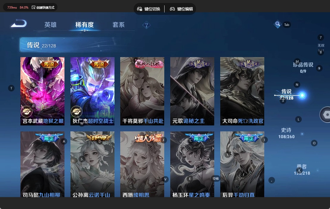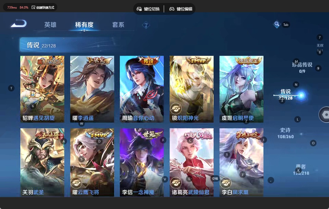 - [11880840]V9 6典藏 21传说 126英雄 277皮肤 典藏英雄武则天 可修改实名 优质装备:倪克斯神谕(宇宙婆娘),无限飓风号(高达),活力突击,杀手不太冷,鸣剑·曳影,弑枪猎影(韩信典藏),冠军飞将,云鹰飞将(小将军),久胜战神,一念神魔,末日机甲-孙尚香(绿蚂蚱),仲夏夜之梦(大飞蛾),李逍遥,淬星耀世,碎云,惊梅引 传说皮:乘龙·问璇玑(孙尚香年限),幻光神枪 珍宝阁皮:妄想食味,蔷薇恋人 限定皮:鸣野蒿,至尊宝,凤求凰(白切鸡),凤凰于飞,武陵仙君(小桃花),异界灵契(白毛香),前尘镜,时雨天司(水龙头),高山流水,五谷丰年,武圣,梁祝,逐梦之星,天狼溯光者,李小龙,猪悟能,大圣娶亲,天魔缭乱,美猴王 史诗皮:星界战将,龙之律动,蔬乡物语(鲁班七号),百相守梦-百里守约,紫霞仙子,苍穹之光,电玩小子(小书包),白龙吟,黄金分割率,特工魅影,千年之狐,永昼,魅语,高渐离燃音魔法,冰冠公主,偶像歌手,暗夜猫娘,龙骑士(小龙虾),末日机甲-吕布,猫狗日记-孙策,猫狗日记-大乔,时之恋人-孙尚香,乱世虎臣,节奏热浪,修罗,女仆咖啡,摇滚巨星,水果甜心,绅士熊喵,天才门将,星夜王子,心灵骇客,功夫厨神,德古拉伯爵,暗隐猎兽者,幽灵船长,鬼剑武藏,心灵战警,天秀·启明,舞动绿茵,地狱岩魂,纤云弄巧,拒霜思,缤纷独角兽,乘风破浪,逐浪之夏,月团寄思,水晶猎龙者,曙光守护者,箭羽风息,金属风暴,原初追逐者,圣诞狂欢,圣诞恋歌,鹰眼统帅,暗夜贵公子,魅力维加斯,黎明之约,雪上飞焰,未来纪元-赵云