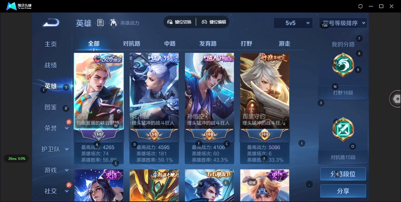- [11681440]V6 7传说 113英雄 95皮肤 可修改实名 优质装备:黄金狮子座,一念神魔,时之恋人-刘备(电焊工),山海·炽霜斩(李信年限),澜逐花归海 传说皮:幻光神枪 珍宝阁皮:万物之道 限定皮:逐霄战戟,鸣野蒿,至尊宝 史诗皮:龙之律动,埋骨钱,电玩·爆裂旋风,蒙恬荣光圣徽,偶像歌手,天才门将,星夜王子,心灵骇客,暗隐猎兽者,鬼剑武藏,逐浪之夏,曙光守护者,金属风暴,原初追逐者,圣诞狂欢,暗夜贵公子,魅力维加斯
