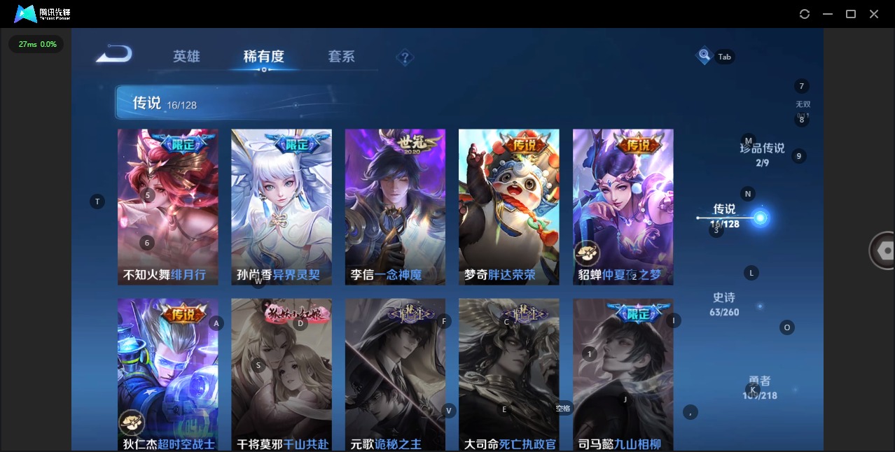 [11414331]V7 1典藏 2珍品传说 16传说 125英雄 242皮肤 可修改实名 优质装备:鸣剑·曳影,江户川柯南,怪盗基德,一念神魔,仲夏夜之梦(大飞蛾),胖达荣荣,超时空战士-狄仁杰 传说皮:星之鸣奏,祥瑞亨通,幻光神枪 珍宝阁皮:妄想食味,蔷薇恋人 限定皮:愿照·九州拓(澜年限),愿照·福禄聚(蔡文姬年限),愿照·岁时盈(虞姬年限),愿照·山河定(司空震年限),愿照·众生和(妲己年限),愿照·千秋盛(女娲年限),逐霄战戟,鸣野蒿,异界灵契(白毛香),傲雪梅枪,绯月行,神威(电光马子),高山流水,五谷丰年,梁祝,岱宗(典韦年限),李小龙,孙行者,玉兔公主 史诗皮:狼魂孤将,化蝶舞,星界战将,茶境仙,破空之剑,芈月浮光幕影,琥珀纪元伽罗,上官婉儿群星魔术团,百相守梦-百里守约,紫霞仙子,千年之狐,江河有灵,百解令(蒙犽),高渐离燃音魔法,冰冠公主,暗夜猫娘,猫狗日记-孙策,乱世虎臣,修罗,女仆咖啡,水果甜心,天才门将,星夜王子,心灵骇客,时之奇旅-安琪拉,暗隐猎兽者,幽灵船长,鬼剑武藏,乐园奇幻夜,舞动绿茵,纤云弄巧,繁星吟游(呼啦呼啦),拒霜思,乘风破浪,逐浪之夏,水晶猎龙者,金属风暴,原初追逐者,圣诞狂欢,圣诞恋歌,鹰眼统帅,魅力维加斯,未来纪元-赵云