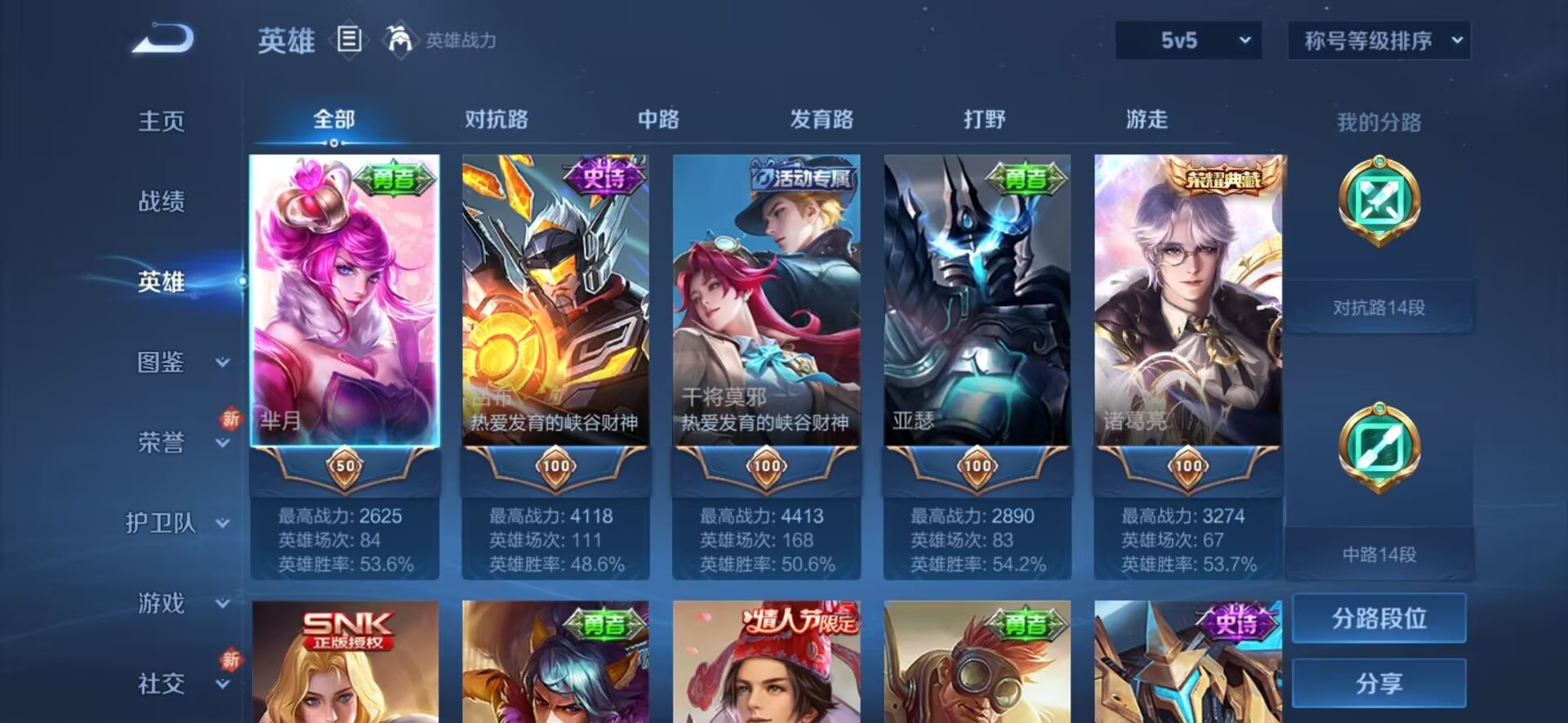 - PX_2096365-安卓Q 【可二次】 英雄数量:105 皮肤数量:96 贵族等级:贵族V5 传说品质3 史诗品质19愿照·岁时盈 炽阳神光 鸣野蒿 鬼剑武藏 魅力维加斯 皇家上将 暗隐猎兽者 幽灵船长 圣诞狂欢 金属风暴 江河有灵 舞动绿茵 水晶猎龙者 紫霞仙子 圣诞恋歌 摇滚巨星 琥珀纪元女 冰冠公主 冰雪圆舞曲 鹰眼护卫 水果甜心 节奏热浪 蔷薇恋人 程咬金群星魔术团 沉稳之力 救世之瞳