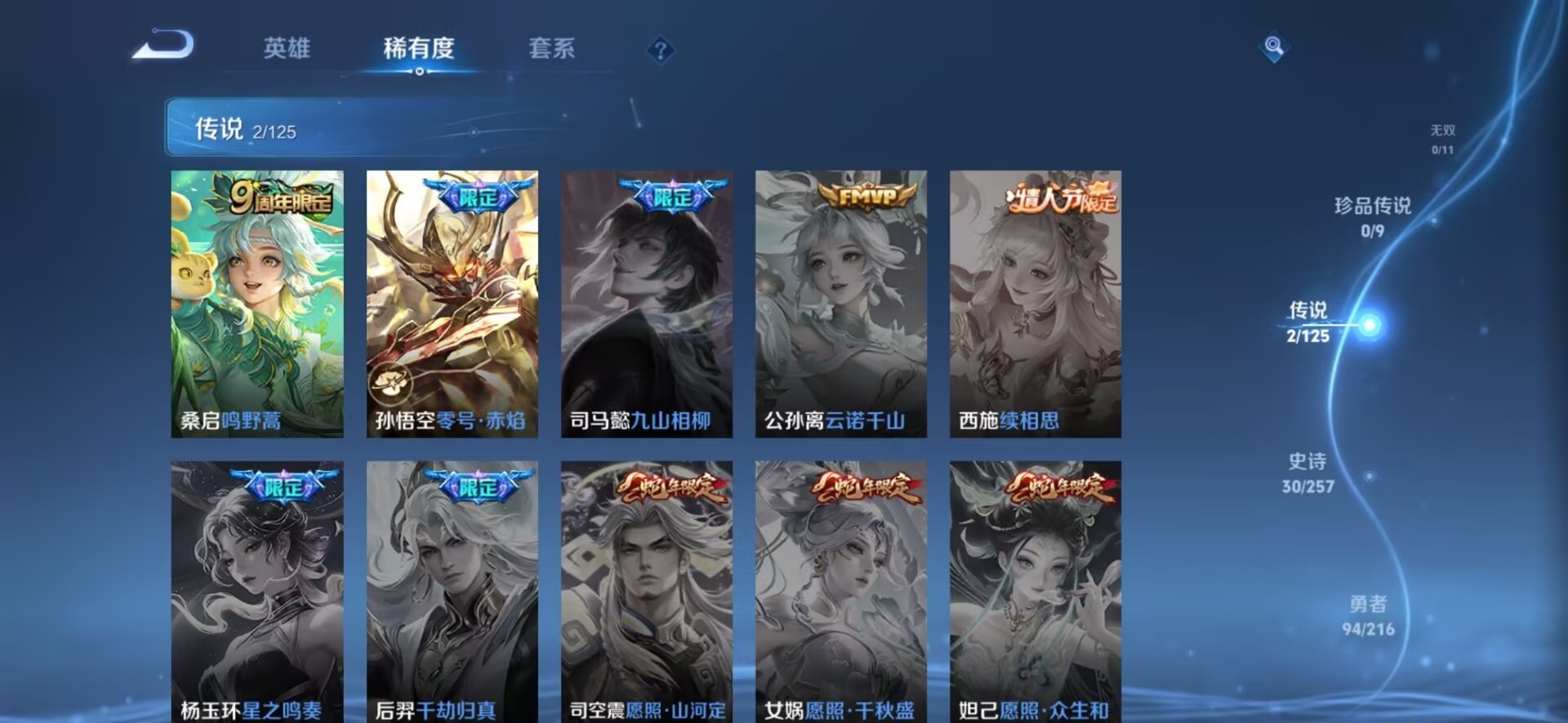 刘邦夺宝奇兵,夏侯惇朔风刀,老夫子醍醐杖,沈梦溪星空之诺,曹操烛龙,典韦穷奇,鲁班大师探海日志,明世隐疑决卦,蒙犽狂想玩偶喵,马可波罗暗影游猎,鬼谷子原初探秘者,张良古海寻踪,狄仁杰万华元夜,程咬金演武夺筹,李元芳银河之约,弈星混沌棋,钟馗驱傩正仪,狂铁御狮