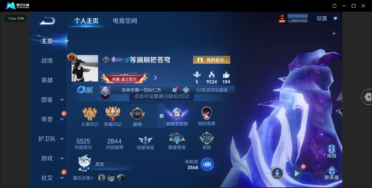 - PX_2095055-实名: 可修改 贵族等级: V5 英雄数: 123 皮肤数: 111 传说皮: 山海·苍雷引 限定皮: 梁祝,五谷丰年,诗剑行,鸣野蒿