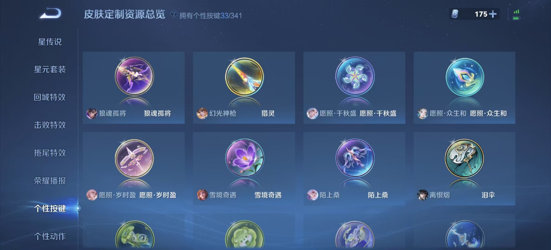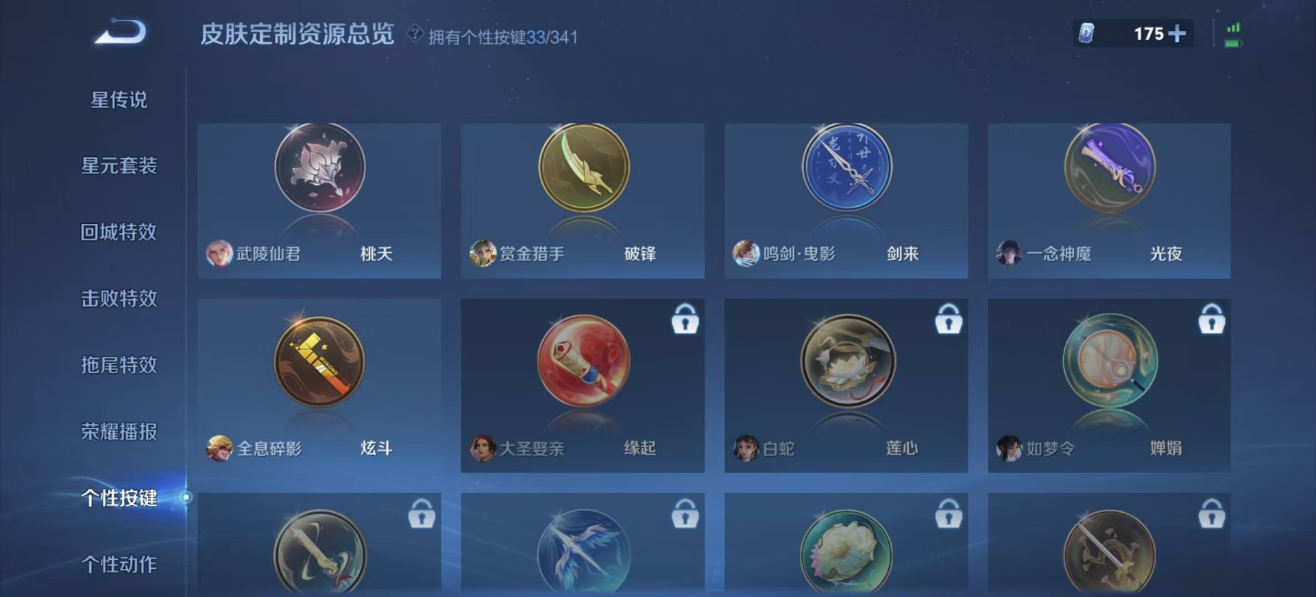 大乔挚爱花嫁,铠绛天战甲,刘备时之恋人,赵云乘龙·铭钟鼎,干将莫邪久胜战神,典韦战鼓燎原,李信一念神魔,孙尚香音你闪耀,孙策挚爱之约,孙策乘龙·淬吴钩,达摩黄金狮子座,孙尚香乘龙·问璇玑,王昭君乞巧织情,吕布曦玄引,公孙离记忆之芯,亚连落雪白狼,貂蝉遇见胡旋,夏洛特浮生妄,艾琳觅芳踪,张良黄金白羊座,曜云鹰飞将,马超无双飞将,李元芳飞鸢探春,墨子黄金天蝎座,澜逐花归海,虞姬云霓雀翎,云缨幻光神枪
