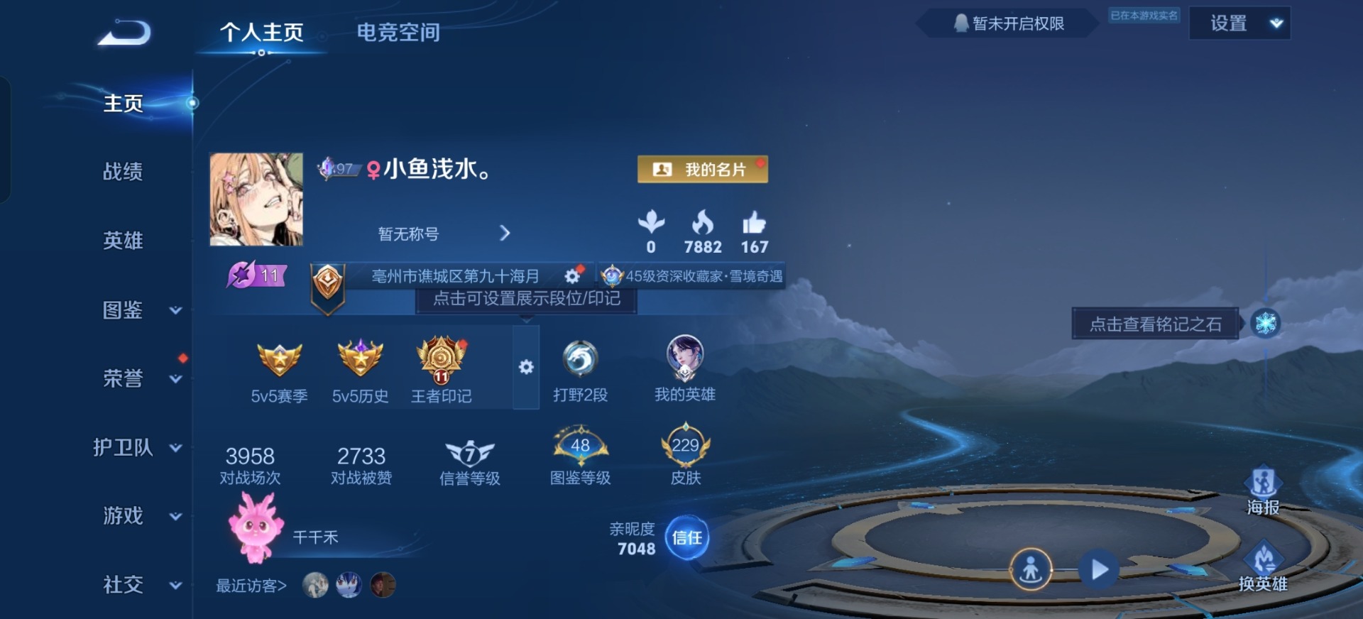 - PX_2099277-实名: 可修改 贵族等级: V2 英雄数: 78 皮肤数: 42 荣耀水晶: 幻阙歌