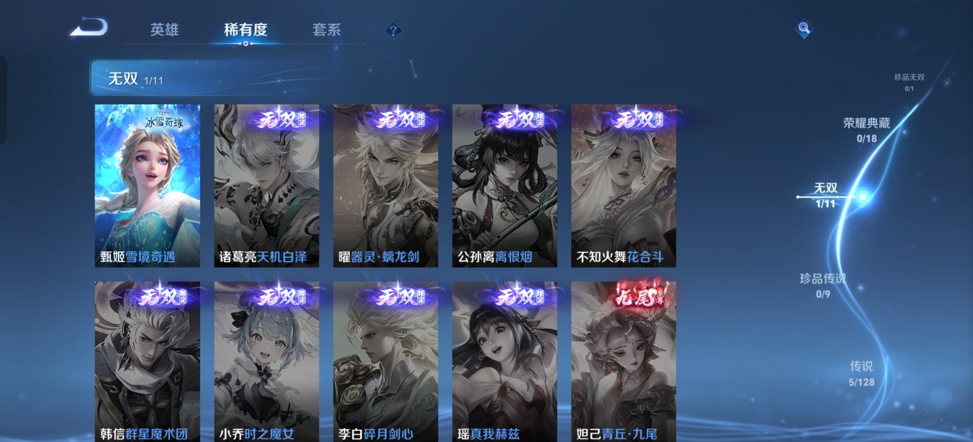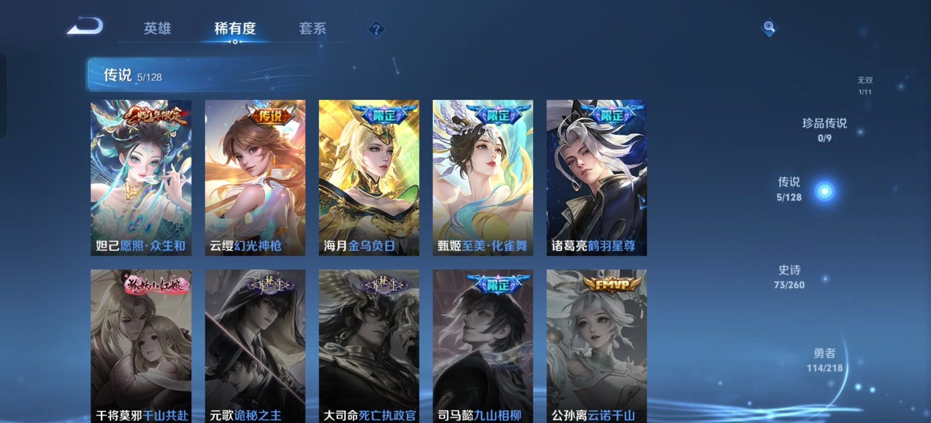 - [11443582]V7 1典藏 2珍品传说 8传说 124英雄 215皮肤 可修改实名 女号 优质装备:拾光映像(瑶典藏),器灵·落星盏,大耳狗之梦,黄金射手座,仲夏夜之梦(大飞蛾),乞巧织情,游龙清影(小青龙),花朝如约(花篮子),涂山容容 传说皮:续相思 珍宝阁皮:妄想食味,蔷薇恋人 限定皮:愿照·众生和(妲己年限),鸣野蒿,至美·乘鲤谣,梁祝,时之奇旅-妲己,神器·万象笔 史诗皮:鸭鸭历险记-刘禅,星界战将,龙之律动,百相守梦-周瑜,茶境仙,幻珠鲛人,破空之剑,涂山红红,蒙犽顽岩魄,上官婉儿群星魔术团,乘龙·忆丹青(大乔年限),百相守梦-黄忠,遇见神鹿,紫霞仙子,黄金分割率,江河有灵,白蛇,猫狗日记-大乔,女仆咖啡,水果甜心,绅士熊喵,心灵骇客,时之奇旅-安琪拉,功夫厨神,暗隐猎兽者,幽灵船长,鬼剑武藏,舞动绿茵,诗语江南,繁星吟游(呼啦呼啦),拒霜思,缤纷独角兽,乘风破浪,鹰眼统帅,魅力维加斯,未来纪元-赵云