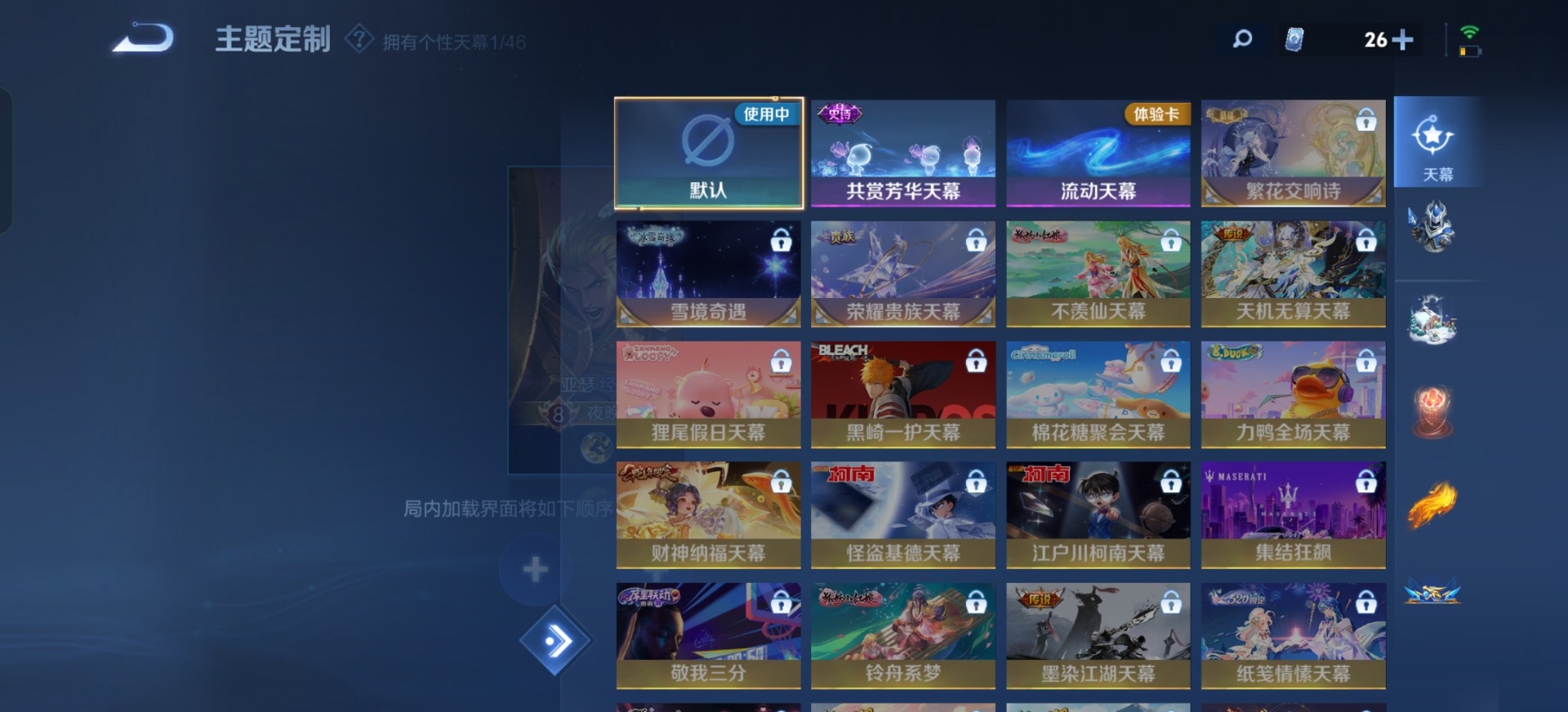金蝉唐三藏,哪吒逐梦之翼,苏烈玄武志,干将莫邪冰霜恋舞曲,后羿辉光之辰,诸葛亮时雨天司,司空震愿照·山河定,裴擒虎李小龙,裴擒虎天狼狩猎者,上官婉儿梁祝,马可波罗山海·玄木吟,桑启鸣野蒿,孙悟空大圣娶亲,孙悟空至尊宝,百里玄策白虎志,妲己时之彼端,韩信飞衡,韩信逐梦之影,百里守约朱雀志,关羽武圣,关羽冰锋战神,橘右京枫霜尽