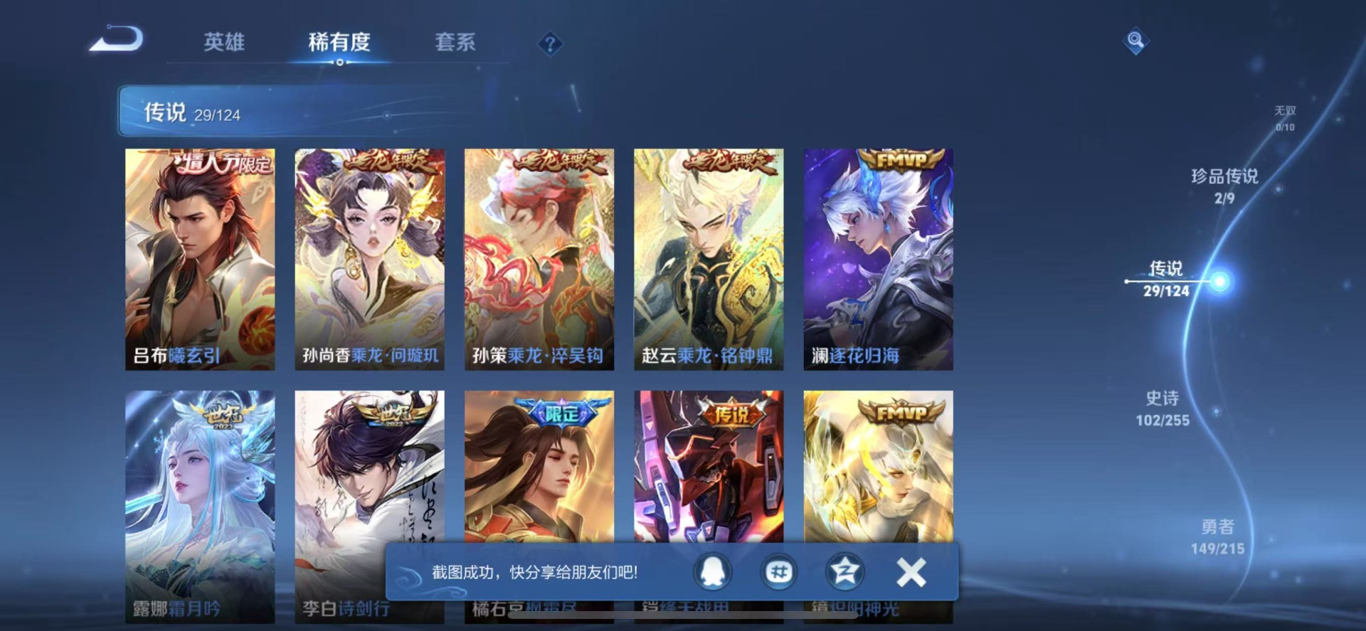 [11427002]V8 2典藏 2珍品传说 29传说 125英雄 355皮肤 可修改实名 女号 荣耀水晶:拾光映像(瑶典藏),弑枪猎影(韩信典藏) 珍品传说:怪盗基德,朽木白哉 传说皮:牧神诗旅,金乌负日,乘龙·问璇玑(孙尚香年限),乘龙·铭钟鼎(赵云年限),乘龙·淬吴钩(孙策年限),吕布曦玄引,落雪白狼,黄金天蝎座,续相思,幻光神枪,玄雷天君,朵莉亚心动手记,黄金狮子座,仲夏夜之梦(大飞蛾),地狱之眼,一念神魔,云鹰飞将(小将军),炽阳神光,时之恋人-刘备(电焊工),绛天战甲(鸡嘴战神),超时空战士-狄仁杰,霜月吟,澜逐花归海 珍宝阁皮:优雅恋人,蔷薇恋人 限定皮:愿照·千秋盛(女娲年限),逐霄战戟,鸣野蒿,武陵仙君(小桃花),魔法小厨娘,神威(电光马子),遇见飞天,高山流水,诗剑行,五谷丰年,李小龙,孙行者,时之祈愿-云中君,玉兔公主,枫霜尽 史诗皮:百相守梦-百里守约,星界战将,茶境仙,苍鳞隐世,器灵·浮梦炉,化蝶舞,鸭鸭历险记-刘禅,龙之律动,谪仙醉月,石田雨龙,决胜骁骑,芈月浮光幕影,怒海争锋,海诺心动手记,夜落电台,撼地雄心,奇遇星旅,蔬乡物语(鲁班七号),乘龙·聚宝船(安琪拉年限),乘龙·忆丹青(大乔年限),琥珀纪元伽罗,破空之剑,小牛鸭,百相守梦-周瑜,戍鼓铭心,遇见神鹿,紫霞仙子,苍穹之光,电玩小子(小书包),特工魅影,千年之狐,冰冠公主,雪夜绮愿(周瑜),百解令(蒙犽),高渐离燃音魔法,蒙恬荣光圣徽,偶像歌手,银翎春语,暗夜猫娘,魅语,末日机甲-吕布,乱世虎臣,节奏热浪,修罗,女仆咖啡,摇滚巨星,水果甜心,绅士熊喵,天才门将,星夜王子,心灵骇客,时之奇旅-安琪拉,功夫厨神,德古拉伯爵,暗隐猎兽者,幽灵船长,鬼剑武藏,暗渊魔法,心灵战警,乐园奇幻夜,舞动绿茵,地狱岩魂,纤云弄巧,拒霜思,缤纷独角兽,乘风破浪,逐浪之夏,水晶猎龙者,曙光守护者,热力回旋,箭羽风息,金属风暴,圣诞狂欢,圣诞恋歌,鹰眼统帅,暗夜贵公子,魅力维加斯,无心,未来纪元-赵云
