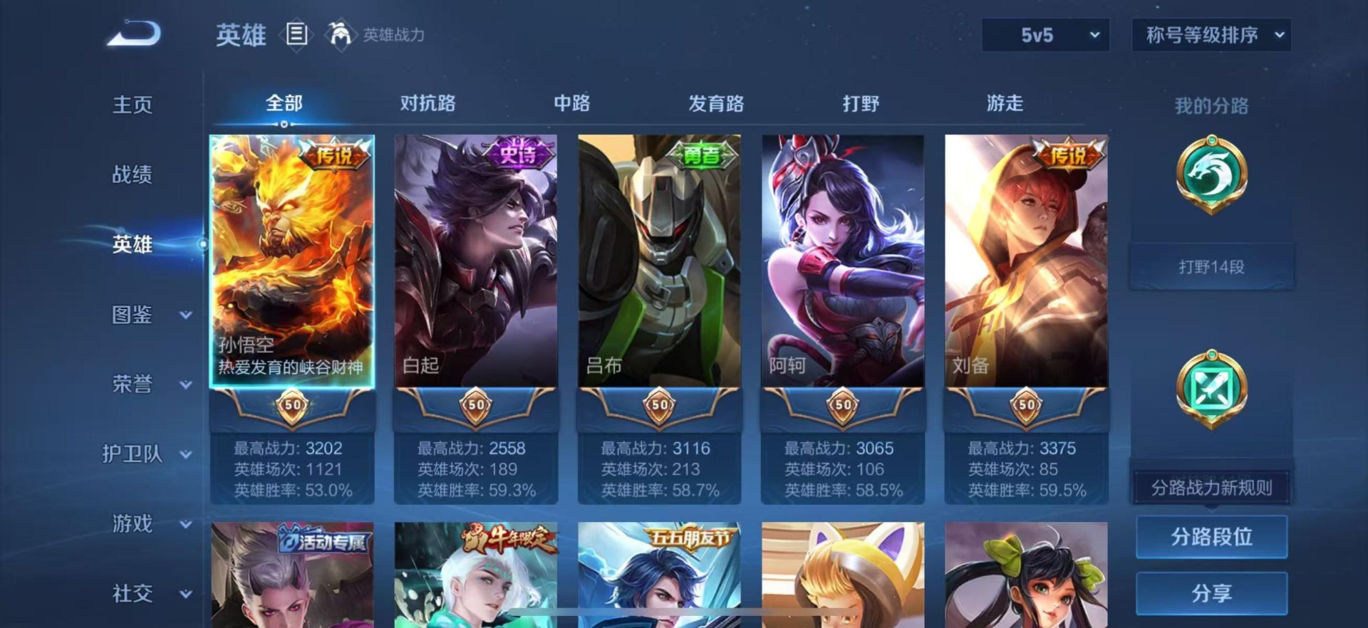 - [11471746]V6 3传说 122英雄 95皮肤 可修改实名 优质装备:黄金射手座,久胜战神,地狱之眼 珍宝阁皮:蔷薇恋人 限定皮:李小龙,逐梦之影 史诗皮:白龙吟,千年之狐,乱世虎臣,节奏热浪,修罗,心灵骇客,水晶猎龙者,曙光守护者,金属风暴,圣诞狂欢,魅力维加斯