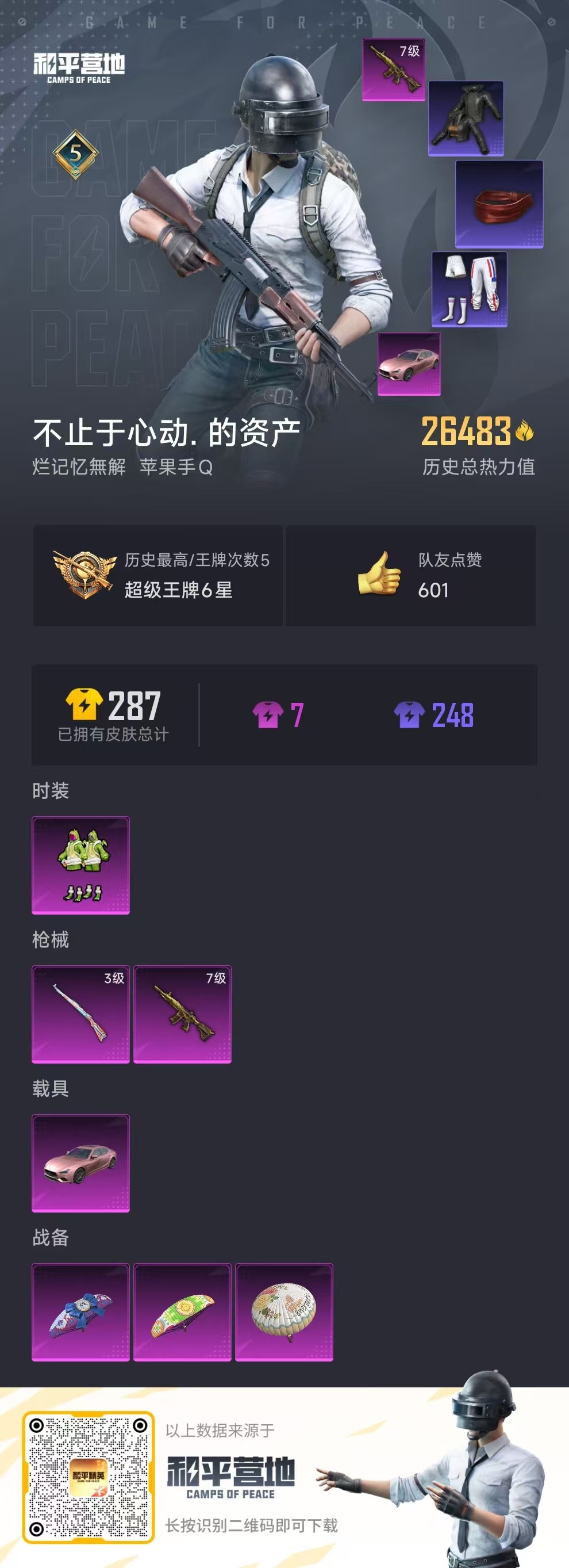 - PX_2106761- 苹果手Q-7王牌印记-13粉装-12特效枪-0载具-69326热力值-140套装-203枪皮-5卓越印记-4传奇印记 【13粉装】,初号机 觉醒Ver.,甜心巧克力,宝贝奶油派,天使彩虹糖,放客神游,闲梦青缨,阿尔茜,天星战神,蜜语绒猫,美雪,圣堂之誓,烟云彩露,电磁星 【12特效枪】AKM-梦之光华-5级 SCAR-L-锦绣绵绵-5级 M416-风花雪月-7级 AUG-超