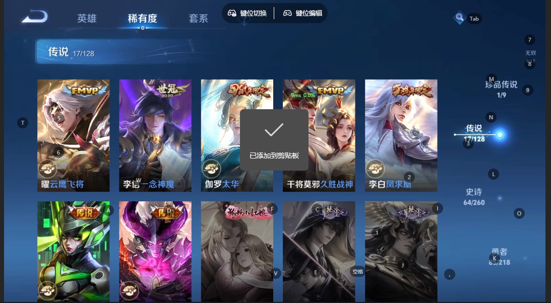 - PX_2089480-贵族4/皮肤155/传说5/史诗34/英雄123/女武神/特工战影/胡桃夹子/胖达荣荣/炽阳神光/绯月行/桑启鸣野蒿/司空震愿照山河定/狄仁杰阴阳师/赵云皇家上将/高渐离死亡摇滚/钟无艳超时空战士/白起夜都怪侠/芈月幻夜卜梦/元歌无心/甄姬落雪兰心/沙漠行僧/项羽海滩派对/金庭之子/绯月行/后羿圣弓游侠/云中旅人/胡桃夹子/干将莫邪真爱魔法/黎明之约/太乙真人华丽摇滚/鬼谷子