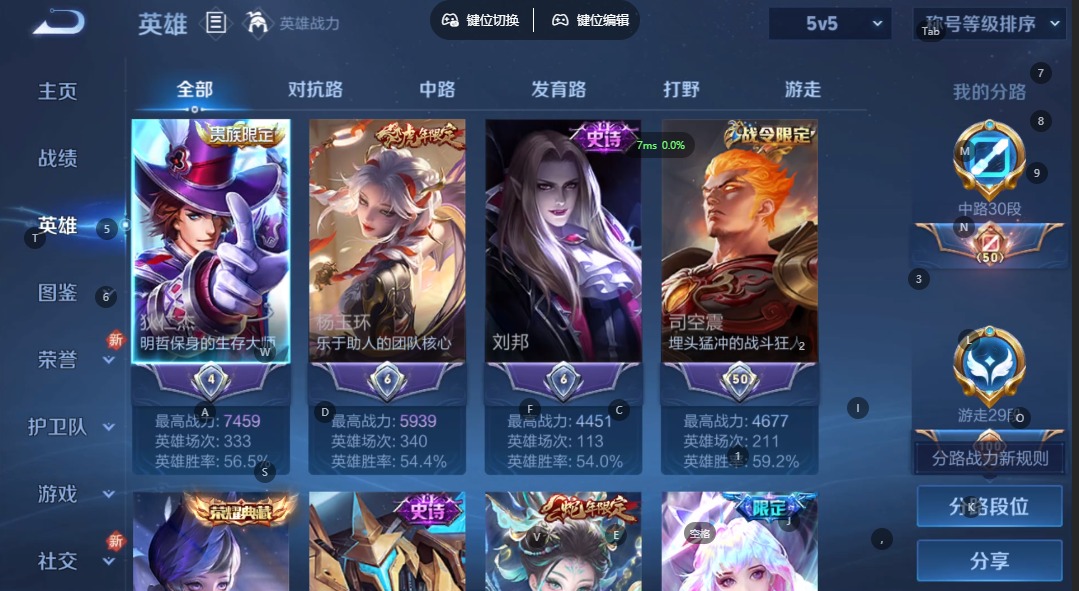 - [11446079]V7 1珍品传说 12传说 125英雄 136皮肤 可修改实名 优质装备:怪盗基德,黄金射手座,云鹰飞将(小将军),一念神魔,澜逐花归海 传说皮:貂蝉曦玄引,幻光神枪 珍宝阁皮:妄想食味 限定皮:愿照·九州拓(澜年限),愿照·岁时盈(虞姬年限),愿照·山河定(司空震年限),逐霄战戟,陌上桑,鸣野蒿,齐天大圣,怒海麟威,孙行者 史诗皮:狼魂孤将,绮世丹青,化蝶舞,星界特工,龙之律动,石田雨龙,茶境仙,破空之剑,埋骨钱,怒海争锋,蔬乡物语(鲁班七号),超元猎域,百相守梦-百里守约,紫霞仙子,特工魅影,千年之狐,高渐离燃音魔法,魅语,猫狗日记-孙策,乱世虎臣,节奏热浪,水果甜心,绅士熊喵,心灵骇客,德古拉伯爵,暗隐猎兽者,幽灵船长,鬼剑武藏,心灵战警,乐园奇幻夜,天秀·启明,纤云弄巧,缤纷独角兽,逐浪之夏,月团寄思,水晶猎龙者,箭羽风息,鹰眼统帅,暗夜贵公子,魅力维加斯,天秀·音浪,未来纪元-赵云