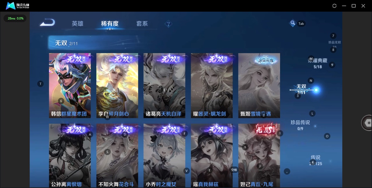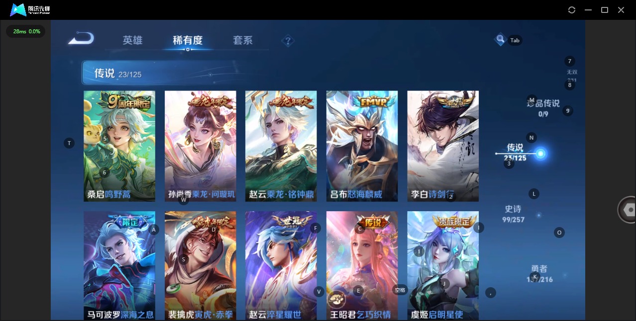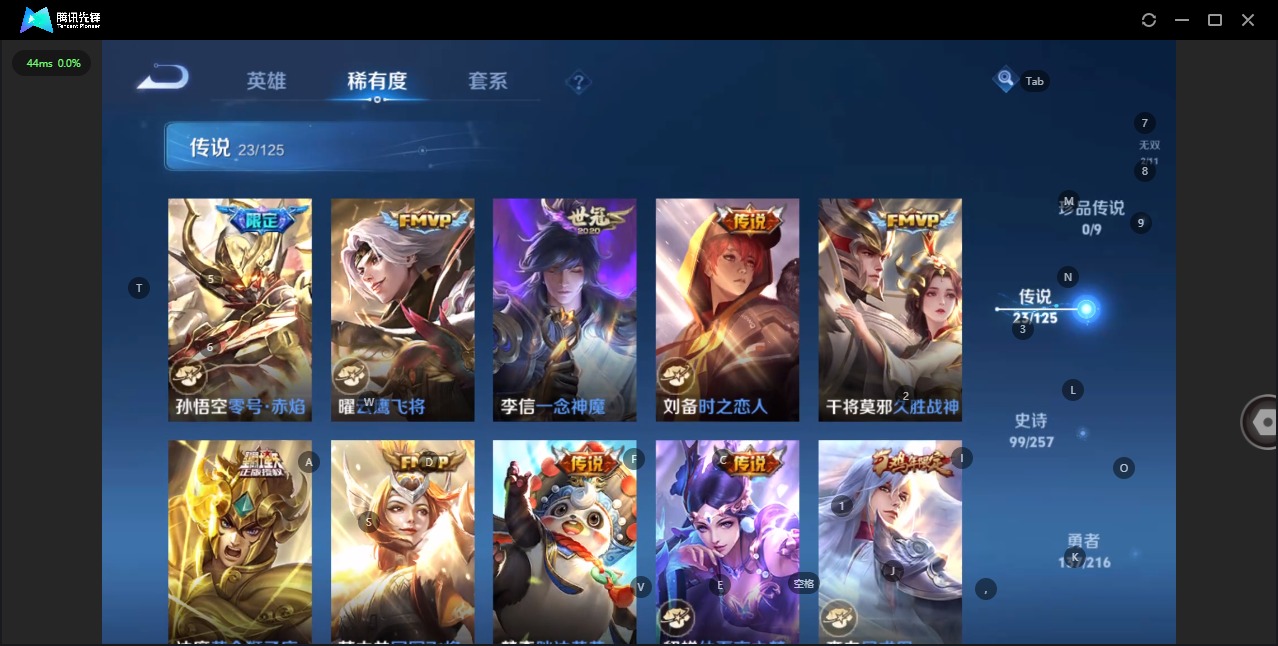 - [11605052]V5 4传说 122英雄 148皮肤 可修改实名 优质装备:炽阳神光,胖达荣荣 珍宝阁皮:万物之道,玩趣恶龙 限定皮:愿照·山河定(司空震年限),鸣野蒿,傲雪梅枪,五谷丰年,圣诞老人 史诗皮:器灵·浮梦炉,星界战将,蒙犽顽岩魄,紫霞仙子,苍穹之光,黄金分割率,特工魅影,电玩·爆裂旋风,江河有灵,雪夜绮愿(周瑜),百解令(蒙犽),蒙恬荣光圣徽,乱世虎臣,节奏热浪,修罗,摇滚巨星,水果甜心,天才门将,星夜王子,德古拉伯爵,暗隐猎兽者,幽灵船长,鬼剑武藏,地狱岩魂,纤云弄巧,拒霜思,缤纷独角兽,乘风破浪,水晶猎龙者,曙光守护者,金属风暴,原初追逐者,圣诞狂欢,圣诞恋歌,鹰眼统帅,魅力维加斯,黎明之约,未来纪元-赵云