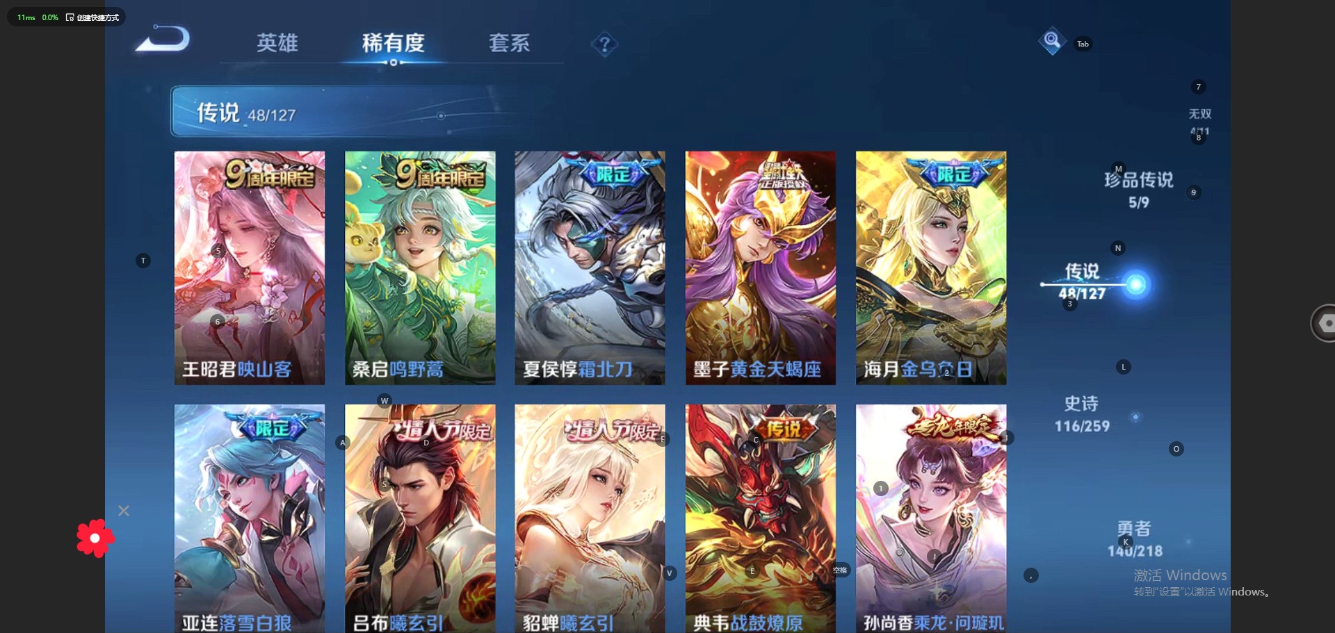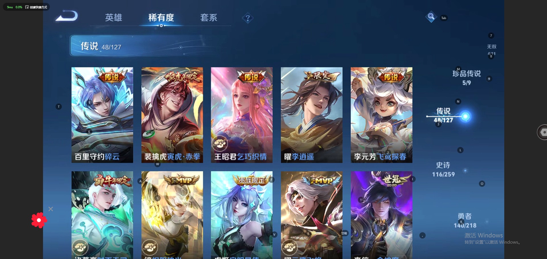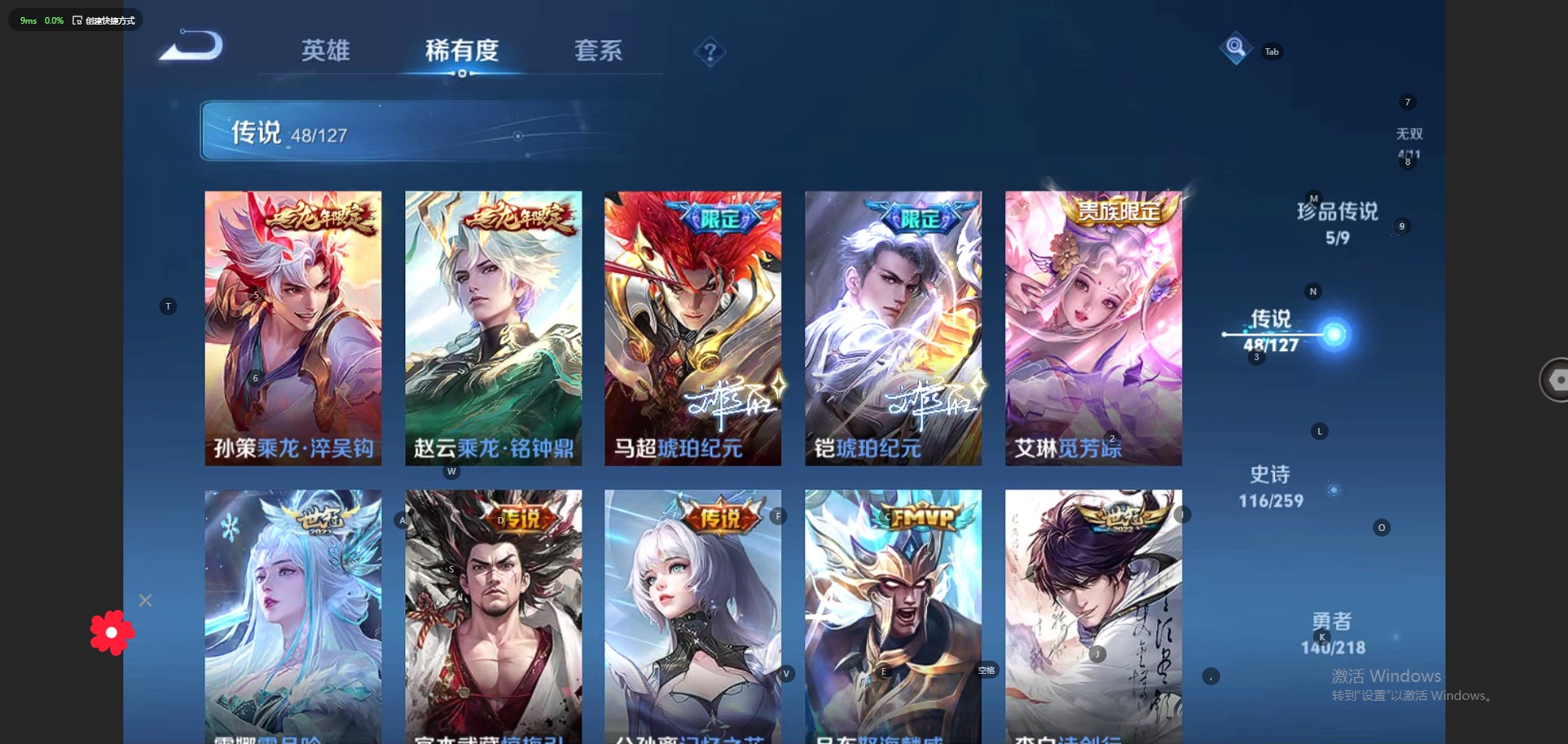- [12030277]V8 3典藏 15传说 125英雄 227皮肤 可修改实名 优质装备:鸣剑·曳影,全息碎影(猴子典藏),银白咏叹调(倪克斯侍卫),云鹰飞将(小将军),一念神魔,仲夏夜之梦(大飞蛾),李逍遥,时之恋人-刘备(电焊工),淬星耀世,无双飞将,山海·炽霜斩(李信年限),灼幽烈阳,夜礼服假面 珍宝阁皮:胡桃夹子,蔷薇恋人 限定皮:凤求凰(白切鸡),异界灵契(白毛香),傲雪梅枪,高山流水,诗剑行,怒海麟威,五谷丰年,青龙志(铠年限),游园惊梦,李小龙,逐梦之影,辉光之辰,孙行者,青春决赛季,匿光追影者,山海·玄木吟(马可年限) 史诗皮:星界战将,东方月初,海诺心动手记,紫霞仙子,电玩小子(小书包),白龙吟,黄金分割率,特工魅影,千年之狐,江河有灵,蒙恬荣光圣徽,冰冠公主,青蛇,偶像歌手,暗夜猫娘,龙骑士(小龙虾),猫狗日记-孙策,乱世虎臣,节奏热浪,修罗,女仆咖啡,水果甜心,绅士熊喵,星夜王子,心灵骇客,时之奇旅-安琪拉,暗隐猎兽者,鬼剑武藏,心灵战警,舞动绿茵,拒霜思,缤纷独角兽,乘风破浪,逐浪之夏,水晶猎龙者,曙光守护者,金属风暴,原初追逐者,鹰眼统帅,黎明之约,赏金猎手,无心,未来纪元-赵云