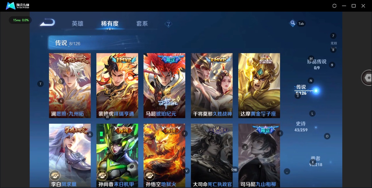 - [11881182]V8 1典藏 15传说 125英雄 359皮肤 可修改实名 优质装备:鸣剑·曳影,云鹰飞将(小将军),地狱火,无双飞将,山海·炽霜斩(李信年限),燃星之曲,百相守梦(张飞),澜逐花归海,琥珀纪元马超 传说皮:乘龙·铭钟鼎(赵云年限),乘龙·淬吴钩(孙策年限),幻光神枪 珍宝阁皮:万物之道,优雅恋人,女武神 限定皮:愿照·山河定(司空震年限),逐霄战戟,鸣野蒿,武陵仙君(小桃花),傲雪梅枪,神威(电光马子),高山流水,匿光决锋者,五谷丰年,青龙志(铠年限),李小龙,猪悟能,匿光追影者,寅虎·御盾(廉颇年限),寅虎·心曲(虎婆),山海·玄木吟(马可年限) 史诗皮:鸭鸭历险记-刘禅,器灵·浮梦炉,化蝶舞,龙之律动,藏狐·褐绒,百相守梦-周瑜,茶境仙,海诺心动手记,破空之剑,战舞者,芈月浮光幕影,怒海争锋,上官婉儿群星魔术团,蔬乡物语(鲁班七号),琥珀纪元伽罗,百相守梦-百里守约,百相守梦-黄忠,紫霞仙子,黄金分割率,特工魅影,千年之狐,永昼,百相守梦(刘备),百相守梦(关羽),江河有灵,雪夜绮愿(周瑜),百解令(蒙犽),高渐离燃音魔法,偶像歌手,暗夜猫娘,魅语,无限星赏官,晚萤,冰冠公主,末日机甲-吕布,猫狗日记-孙策,猫狗日记-大乔,时之恋人-孙尚香,乱世虎臣,节奏热浪,修罗,女仆咖啡,摇滚巨星,水果甜心,绅士熊喵,天才门将,星夜王子,心灵骇客,时之奇旅-安琪拉,德古拉伯爵,暗隐猎兽者,幽灵船长,鬼剑武藏,心灵战警,乐园奇幻夜,舞动绿茵,地狱岩魂,纤云弄巧,拒霜思,缤纷独角兽,乘风破浪,逐浪之夏,水晶猎龙者,曙光守护者,热力回旋,唤灵魅影,金属风暴,圣诞狂欢,圣诞恋歌,鹰眼统帅,魅力维加斯,天秀·音浪,寅虎·御盾,千筹问战,无心,未来纪元-赵云