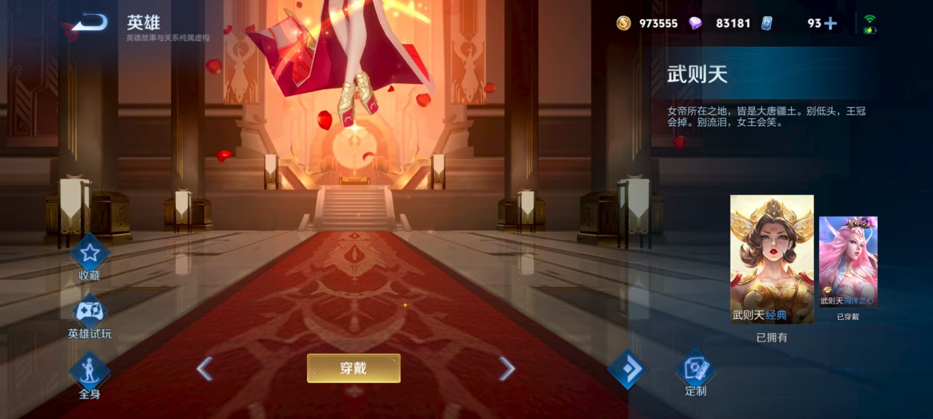 [11296504]V9 3典藏 18传说 125英雄 332皮肤 典藏英雄武则天 可修改实名 荣耀水晶:鸣剑·曳影,全息碎影(猴子典藏),杀手不太冷 传说皮:黄金狮子座,黄金射手座,仲夏夜之梦(大飞蛾),海洋之心,地狱之眼,一念神魔,久胜战神,云鹰飞将(小将军),炽阳神光,超时空战士-狄仁杰 珍宝阁皮:妄想食味,优雅恋人,玩趣恶龙 限定皮:鸣野蒿,至尊宝,白虎志(电光耗子),凤求凰(白切鸡),太华(伽罗年限),梅西,白晶晶,时雨天司(水龙头),神威(电光马子),遇见飞天,高山流水,五谷丰年,冰锋战神,天狼运算者,游园惊梦,梁祝,御风骁将(吕布年限),祈雪灵祝(雪兔子),李小龙,逐梦之影,辉光之辰,霸王别姬-项羽,纯白花嫁,猪悟能,一生所爱,大圣娶亲,天魔缭乱,青春决赛季,冰霜恋舞曲 史诗皮:鸭鸭历险记-刘禅,龙之律动,百相守梦-黄忠,怒海争锋,百相守梦-周瑜,幻珠鲛人,遇见神鹿,紫霞仙子,苍穹之光,电玩小子(小书包),白龙吟,黄金分割率,特工魅影,千年之狐,永昼,末日机甲-莱西奥,蒙恬荣光圣徽,冰冠公主,偶像歌手,晚萤,魅语,暗夜猫娘,末日机甲-吕布,猫狗日记-孙策,猫狗日记-大乔,乱世虎臣,节奏热浪,修罗,女仆咖啡,摇滚巨星,水果甜心,绅士熊喵,天才门将,星夜王子,心灵骇客,功夫厨神,德古拉伯爵,暗隐猎兽者,幽灵船长,鬼剑武藏,心灵战警,天秀·启明,舞动绿茵,地狱岩魂,纤云弄巧,繁星吟游(呼啦呼啦),拒霜思,缤纷独角兽,乘风破浪,逐浪之夏,水晶猎龙者,曙光守护者,箭羽风息,金属风暴,原初追逐者,圣诞狂欢,圣诞恋歌,鹰眼统帅,暗夜贵公子,魅力维加斯,黎明之约,赏金猎手,奇遇舞章,无心,未来纪元-赵云
