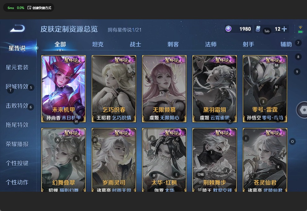 - [11875862]V6 4传说 123英雄 188皮肤 可修改实名 优质装备:末日机甲-孙尚香(绿蚂蚱),地狱火 传说皮:幻光神枪 珍宝阁皮:胡桃夹子,蔷薇恋人 限定皮:鸣野蒿,至尊宝,遇见飞天,梁祝,李小龙,大圣娶亲 史诗皮:化蝶舞,龙之律动,琥珀纪元伽罗,上官婉儿群星魔术团,蔬乡物语(鲁班七号),百相守梦-百里守约,黄金分割率,特工魅影,高渐离燃音魔法,冰冠公主,青蛇,偶像歌手,猫狗日记-孙策,节奏热浪,女仆咖啡,水果甜心,绅士熊喵,功夫厨神,暗隐猎兽者,鬼剑武藏,心灵战警,天秀·启明,舞动绿茵,纤云弄巧,拒霜思,缤纷独角兽,逐浪之夏,月团寄思,水晶猎龙者,箭羽风息,圣诞狂欢,圣诞恋歌,鹰眼统帅,暗夜贵公子,魅力维加斯,未来纪元-赵云