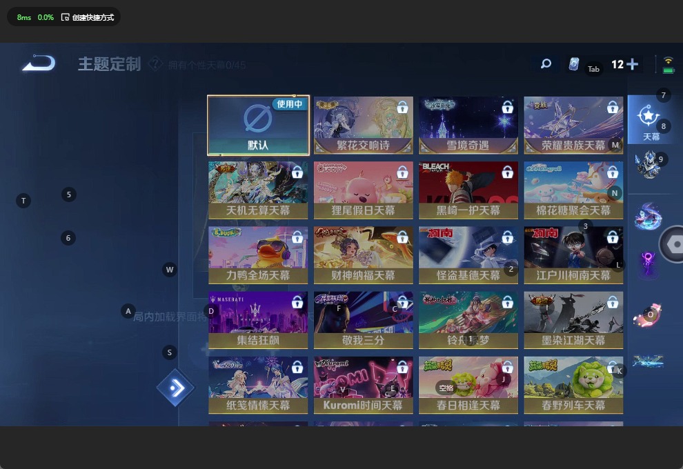 夏侯惇乘风破浪,阿轲暗夜猫娘,铠曙光守护者,刘备百相守梦,曹操幽灵船长,孙策猫狗日记,赵怀真鹤归松栖,吕布圣诞狂欢,吕布末日机甲,诸葛亮黄金分割率,刘禅电玩·爆裂旋风,司马懿暗渊魔法,兰陵王暗隐猎兽者,貂蝉唤灵魅影,夏洛特永昼,嬴政摇滚巨星,嬴政暗夜贵公子,百里玄策热力回旋,雅典娜冰冠公主,李元芳匿光侦查者,百里守约真我赫兹,百里守约特工魅影,墨子龙骑士,墨子金属风暴,瑶遇见神鹿,澜赏金猎手,娜可露露晚萤,王昭君偶像歌手,钟馗乐园奇幻夜,橘右京修罗