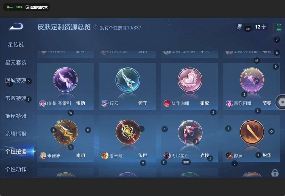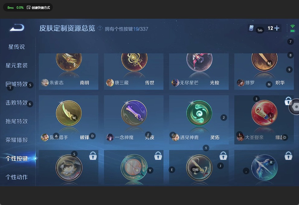 金蝉唐三藏,黄忠烈魂,伽罗天狼溯光者,苏烈玄武志,鲁班七号乒乒小将,鲁班七号寅虎·瑞焰,后羿无尽星芒,诸葛亮时雨天司,裴擒虎李小龙,花木兰瑞麟志,马可波罗山海·玄木吟,孙悟空孙行者,孙悟空大圣娶亲,孙悟空美猴王,赵云引擎之心,百里守约朱雀志