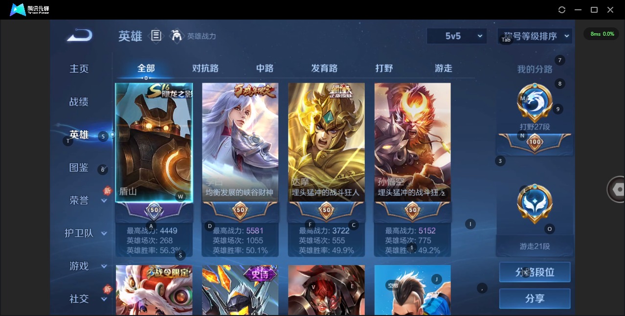 - [11959426]V8 2典藏 1无双 21传说 125英雄 347皮肤 可修改实名 优质装备:全息碎影(猴子典藏),弑枪猎影(韩信典藏),器灵·螭龙剑,云鹰飞将(小将军),黄金白羊座,炽阳神光,一念神魔,末日机甲-孙尚香(绿蚂蚱),地狱火,仲夏夜之梦(大飞蛾),地狱之眼,李逍遥,淬星耀世,末日机甲-孙策,记忆之芯(机甲兔),涂山容容 传说皮:幻光神枪 珍宝阁皮:妄想食味,蔷薇恋人,女武神,玩趣恶龙 限定皮:愿照·九州拓(澜年限),愿照·山河定(司空震年限),鸣野蒿,至尊宝,傲雪梅枪,神威(电光马子),瑞麟志(木兰年限),遇见飞天,高山流水,诗剑行,齐天大圣,五谷丰年,梁祝,虎魄,李小龙,孙行者,猪悟能,寅虎·赤拳(老虎年限),时之祈愿-云中君,百木心枪,深海之息(深海大菠萝),山海·玄木吟(马可年限) 史诗皮:鸭鸭历险记-刘禅,苍鳞隐世,器灵·浮梦炉,糖绘人间,狼魂孤将,化蝶舞,星界战将,龙之律动,茶境仙,破空之剑,蒙犽顽岩魄,蔬乡物语(鲁班七号),织梦人,紫霞仙子,苍穹之光,电玩小子(小书包),黄金分割率,特工魅影,千年之狐,永昼,江河有灵,魅语,蒙恬荣光圣徽,无限星赏官,冰冠公主,青蛇,偶像歌手,晚萤,电玩·爆裂旋风,暗夜猫娘,末日机甲-吕布,猫狗日记-孙策,乱世虎臣,节奏热浪,修罗,女仆咖啡,摇滚巨星,水果甜心,绅士熊喵,天才门将,星夜王子,心灵骇客,功夫厨神,德古拉伯爵,暗隐猎兽者,幽灵船长,鬼剑武藏,暗渊魔法,心灵战警,乐园奇幻夜,舞动绿茵,地狱岩魂,纤云弄巧,拒霜思,缤纷独角兽,乘风破浪,逐浪之夏,水晶猎龙者,曙光守护者,热力回旋,箭羽风息,金属风暴,原初追逐者,圣诞狂欢,圣诞恋歌,鹰眼统帅,黎明之约,赏金猎手,滕王阁序,无心,未来纪元-赵云