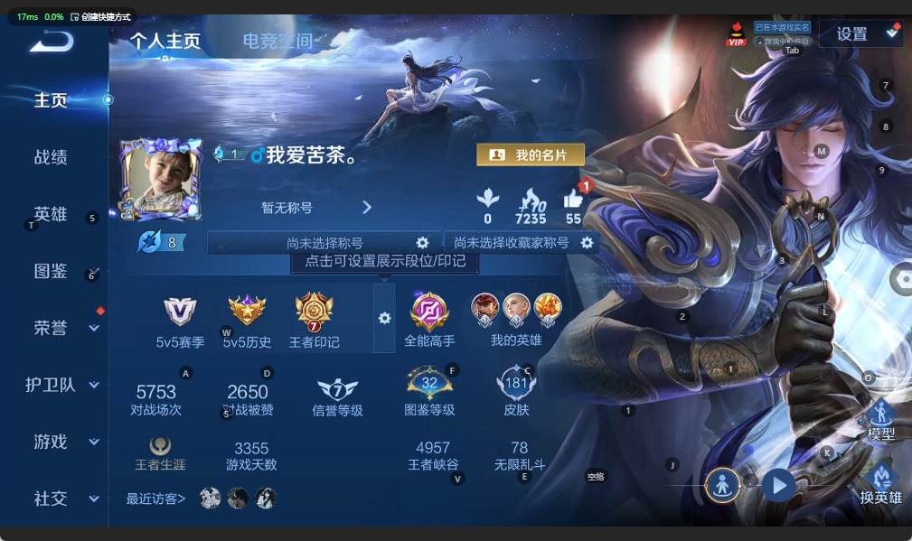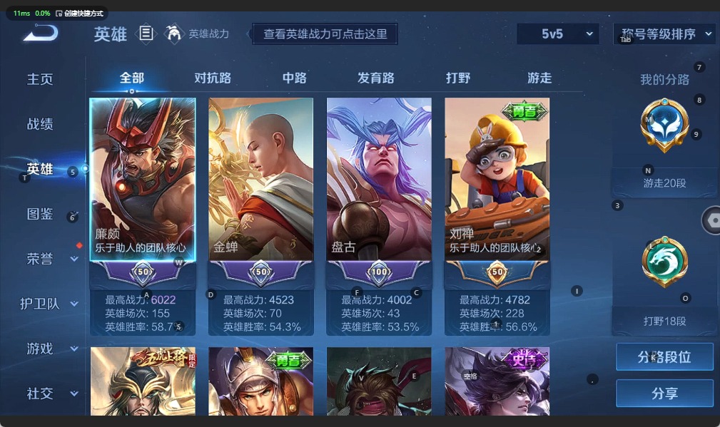 - PX_2105212-实名: 可修改 贵族等级: V5 英雄数: 101 皮肤数: 65 星传说: 幽冥之眼 传说皮: 典韦战鼓燎原 限定皮: 鸣野蒿,逐霄战戟