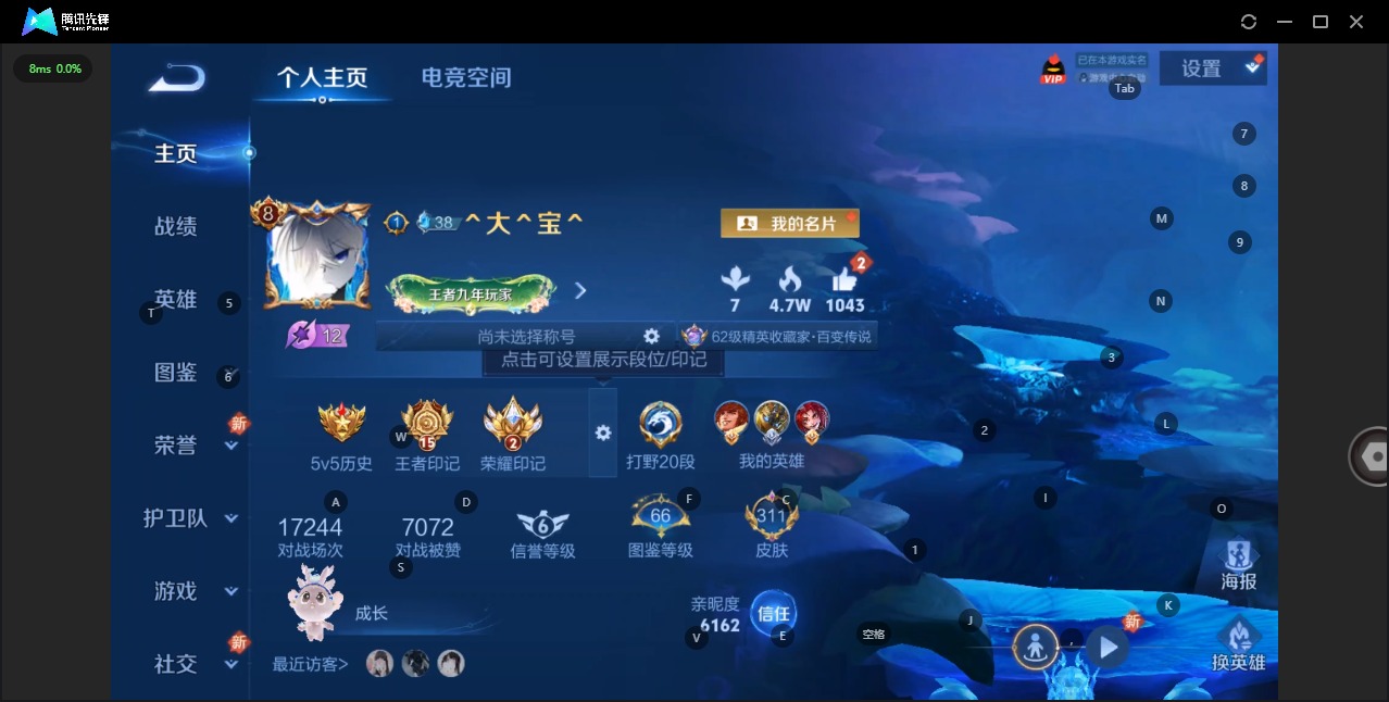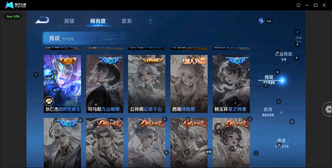 - [12256225]V6 1典藏 1珍品传说 8传说 124英雄 160皮肤 可修改实名 优质装备:鸣剑·曳影,怪盗基德,黄金射手座,云鹰飞将(小将军),猫影幻舞,妄想实况,涂山容容 传说皮:死亡执政官,九山相柳,幻光神枪 珍宝阁皮:妄想食味,蔷薇恋人 限定皮:鸣野蒿,梁祝,李小龙 史诗皮:星界战将,蒙犽顽岩魄,百相守梦-百里守约,遇见神鹿,苍穹之光,江河有灵,蒙恬荣光圣徽,青蛇,偶像歌手,猫狗日记-孙策,乱世虎臣,摇滚巨星,水果甜心,星夜王子,德古拉伯爵,暗隐猎兽者,幽灵船长,鬼剑武藏,心灵战警,缤纷独角兽,乘风破浪,逐浪之夏,水晶猎龙者,箭羽风息,金属风暴,原初追逐者,圣诞狂欢,鹰眼统帅,王者之锤,魅力维加斯,黎明之约