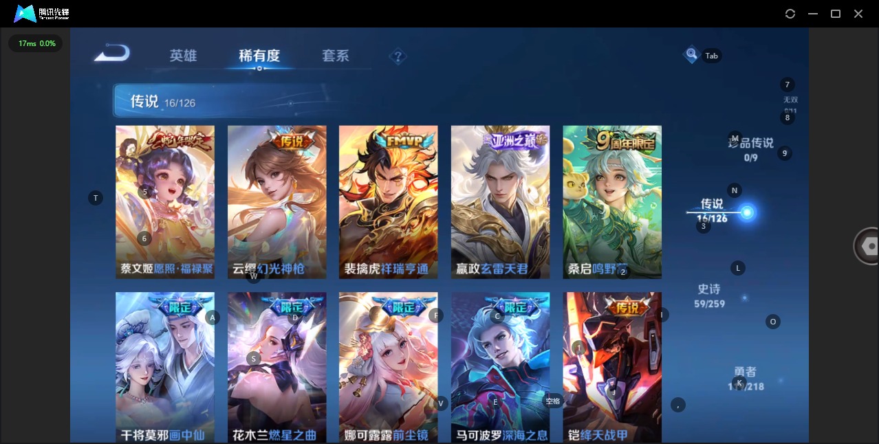 - PX_2085784-12 安卓QQ/永恒钻石/206皮肤/124英雄/1典藏/0珍品无双/1无双/0珍品传说/28传说/65史诗/8稀有英雄 【1 典藏皮肤】九霄神辉 花木兰, 【1 无双皮肤】群星魔术团 韩信, 【28 传说皮肤】鹤归松栖 云缨,启明星使 虞姬,时之祈愿 瑶,电玩·雷克斯 澜,无双飞将 马超,云鹰飞将 曜,齐天大圣 孙悟空,凤求凰 李白,诗剑行 李白,灼幽烈阳 东皇太一,浮生妄