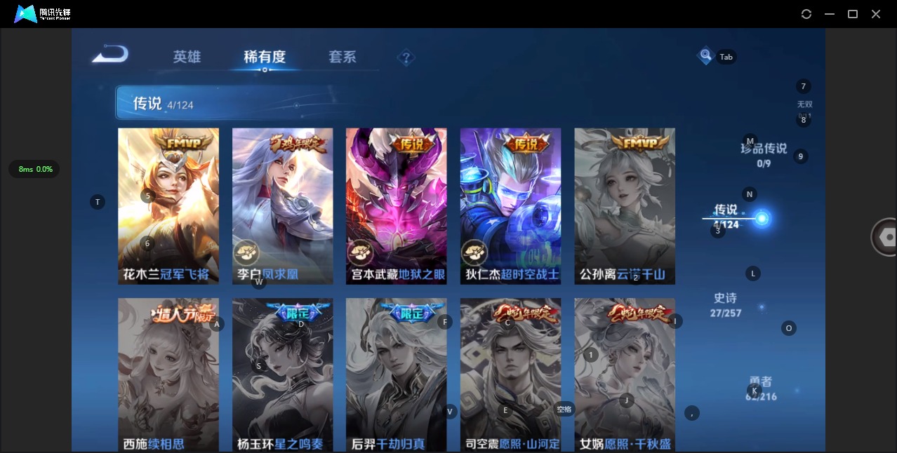 - [11470545]武则天,久胜,-不可二次-119英雄-144皮肤-4传说-38史诗 浮生妄-夏洛特 凤凰于飞-王昭君 冰冠公主-雅典娜 街头霸王-韩信