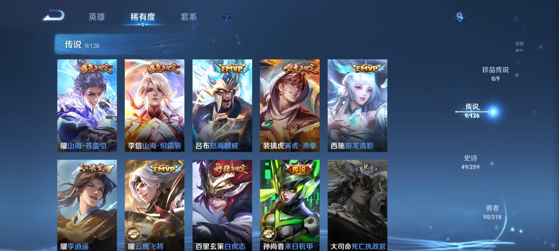 - [12135097]V9 1典藏 3无双 1珍品传说 27传说 125英雄 352皮肤 可修改实名 优质装备:弑枪猎影(韩信典藏),碎月剑心(李白无双),韩信群星魔术团(韩信无双),器灵·螭龙剑,怪盗基德,黄金狮子座,云鹰飞将(小将军),猫影幻舞,炽阳神光,一念神魔,末日机甲-孙尚香(绿蚂蚱),地狱火,仲夏夜之梦(大飞蛾),地狱之眼,胖达荣荣,乞巧织情,时之恋人-刘备(电焊工),游龙清影(小青龙),挚爱之约,鹤羽星尊,妄想实况,鹤归松栖(云缨),澜逐花归海,涂山容容 传说皮:乘龙·铭钟鼎(赵云年限),乘龙·淬吴钩(孙策年限),云诺千山,铠冥王哈迪斯,续相思,幻光神枪 珍宝阁皮:女武神,玩趣恶龙 限定皮:逐霄战戟,鸣野蒿,至尊宝,凤求凰(白切鸡),傲雪梅枪,神威(电光马子),飞衡(韩信年限),幽恒(沐浴露),梁祝,天狼狩猎者,李小龙,逐梦之影,辉光之辰,孙行者,大圣娶亲,美猴王 史诗皮:赞萌露比,化蝶舞,星界战将,谪仙醉月,龙之律动,雪豹·霜爪,百相守梦-周瑜,茶境仙,破空之剑,海诺心动手记,蔬乡物语(鲁班七号),百相守梦-百里守约,百相守梦-黄忠,织梦人,紫霞仙子,苍穹之光,电玩小子(小书包),白龙吟,黄金分割率,特工魅影,千年之狐,江河有灵,鹤归松栖(赵怀真),真我赫兹(百里守约),百解令(蒙犽),高渐离燃音魔法,蒙恬荣光圣徽,冰冠公主,青蛇,偶像歌手,龙骑士(小龙虾),末日机甲-吕布,猫狗日记-孙策,乱世虎臣,节奏热浪,女仆咖啡,摇滚巨星,水果甜心,天才门将,星夜王子,心灵骇客,功夫厨神,德古拉伯爵,暗隐猎兽者,幽灵船长,鬼剑武藏,暗渊魔法,心灵战警,乐园奇幻夜,舞动绿茵,地狱岩魂,纤云弄巧,拒霜思,缤纷独角兽,乘风破浪,逐浪之夏,月团寄思,水晶猎龙者,曙光守护者,箭羽风息,金属风暴,原初追逐者,圣诞狂欢,圣诞恋歌,鹰眼统帅,暗夜贵公子,魅力维加斯,黎明之约,赏金猎手,无心,未来纪元-赵云