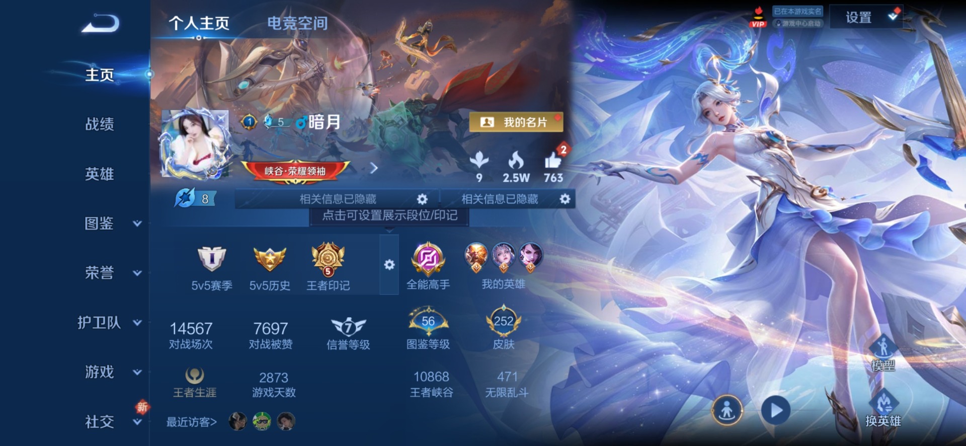 - PX_2089296- 包人脸 V8 贵族积分61205 安卓QQ/223皮肤/123英雄/1典藏/0珍品无双/1无双/0珍品传说/13传说/61史诗/8稀有英雄 【1 星传说皮肤】,金色仲夏夜 貂蝉, 【1 典藏皮肤】,天鹅之梦 小乔, 【1 无双皮肤】,碎月剑心 李白, 【13 传说皮肤】,鹤归松栖 云缨,启明星使 虞姬,白虎志 百里玄策,云鹰飞将 曜,夜礼服假面 狄仁杰,仲夏夜之梦 貂蝉,惊