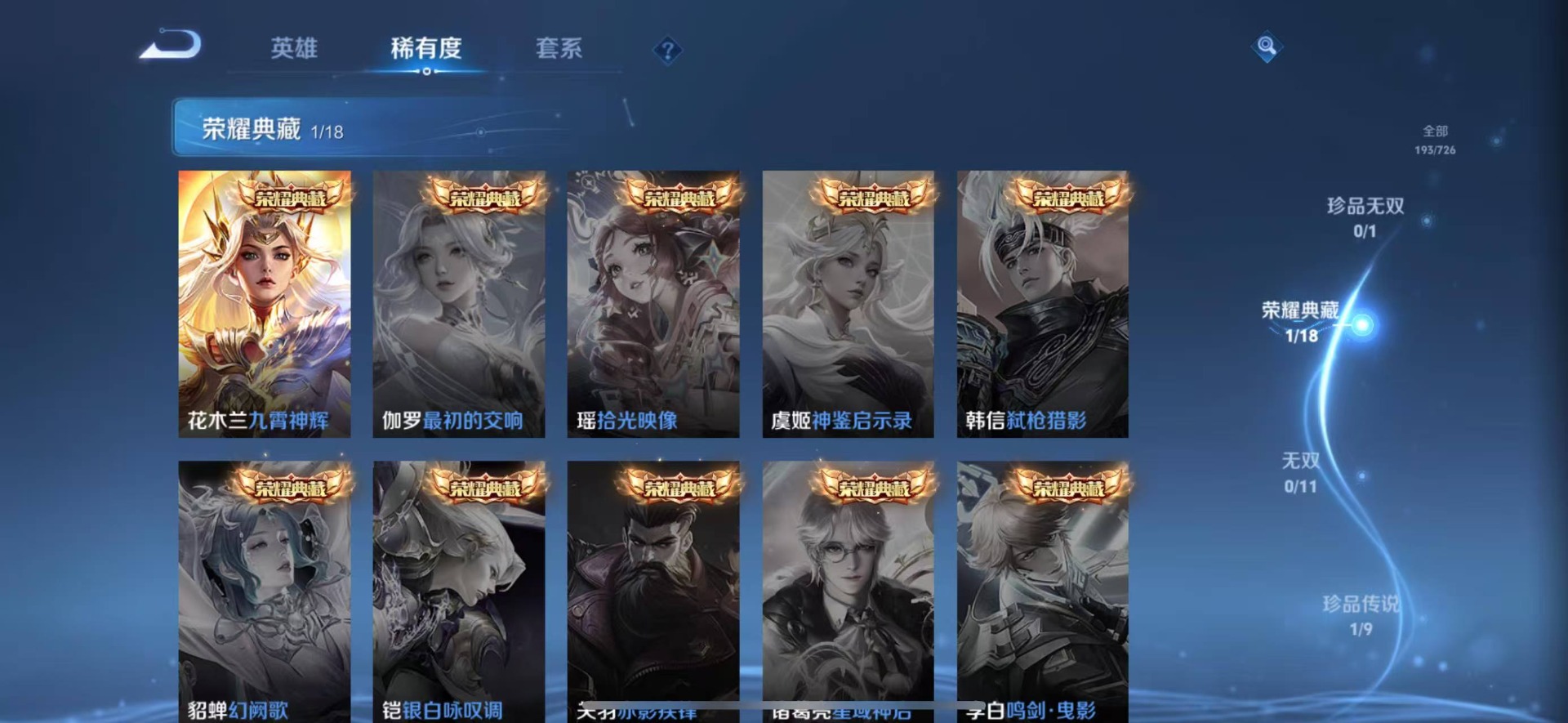- PX_2105344-0-安卓q-贵族7-271皮肤-1典藏 1星传说 幽冥之眼 2珍品 6传说 2珍品 嫦娥-器灵落星盏 马可波罗-怪盗基德 -1典藏(已兑换) 孙悟空-全息碎影 澜-逐花归海 云缨-幻光神枪 澜-愿照九州拓 桑启-鸣野蒿 马可波罗-山海玄木吟 韩信-傲雪梅枪 赵云-百木心枪 阿轲-暗夜猫娘 墨子-龙骑士 曜-云鹰飞将 李信-一念神魔 赵云-未来纪元赵云 扁鹊-灵蛊蚀心 赵怀真