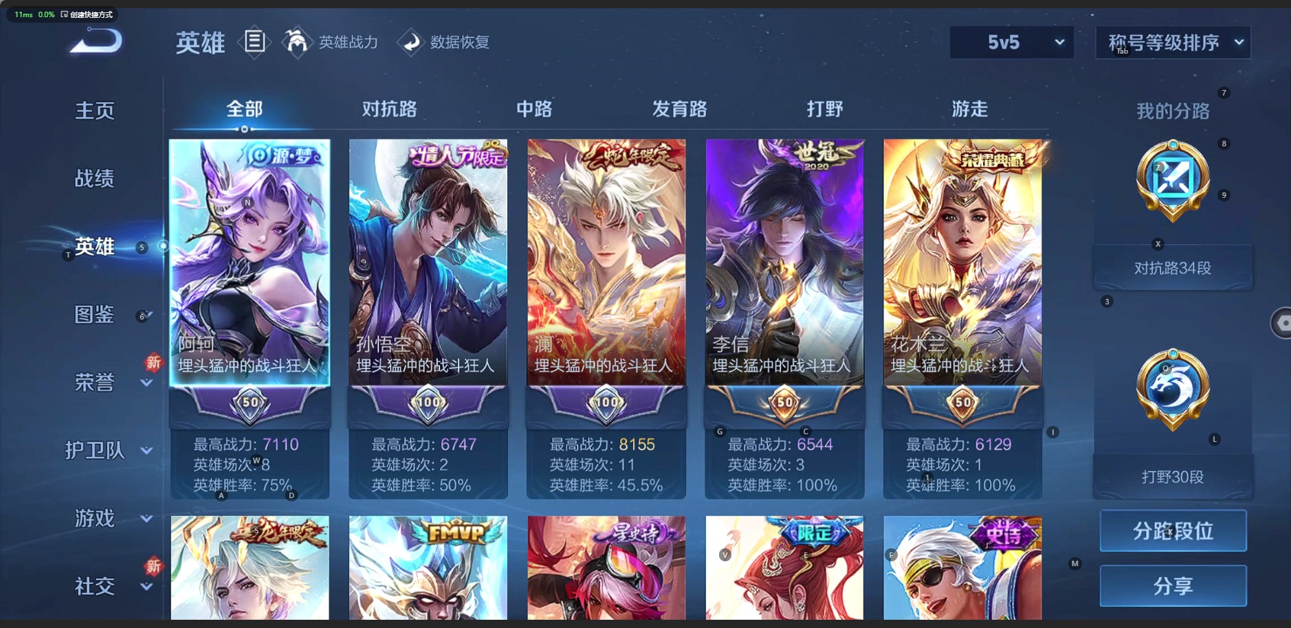- [12074799]V6 5传说 122英雄 161皮肤 可修改实名 优质装备:一念神魔,音你心动-小乔,零号·赤焰 珍宝阁皮:蔷薇恋人 限定皮:鸣野蒿,武陵仙君(小桃花),李小龙,孙行者 史诗皮:化蝶舞,谪仙醉月,怒海争锋,破空之剑,紫霞仙子,特工魅影,千年之狐,江河有灵,偶像歌手,晚萤,末日机甲-吕布,猫狗日记-大乔,乱世虎臣,修罗,女仆咖啡,摇滚巨星,水果甜心,星夜王子,心灵骇客,幽灵船长,鬼剑武藏,乘风破浪,水晶猎龙者,金属风暴,圣诞狂欢,鹰眼统帅,魅力维加斯,未来纪元-赵云