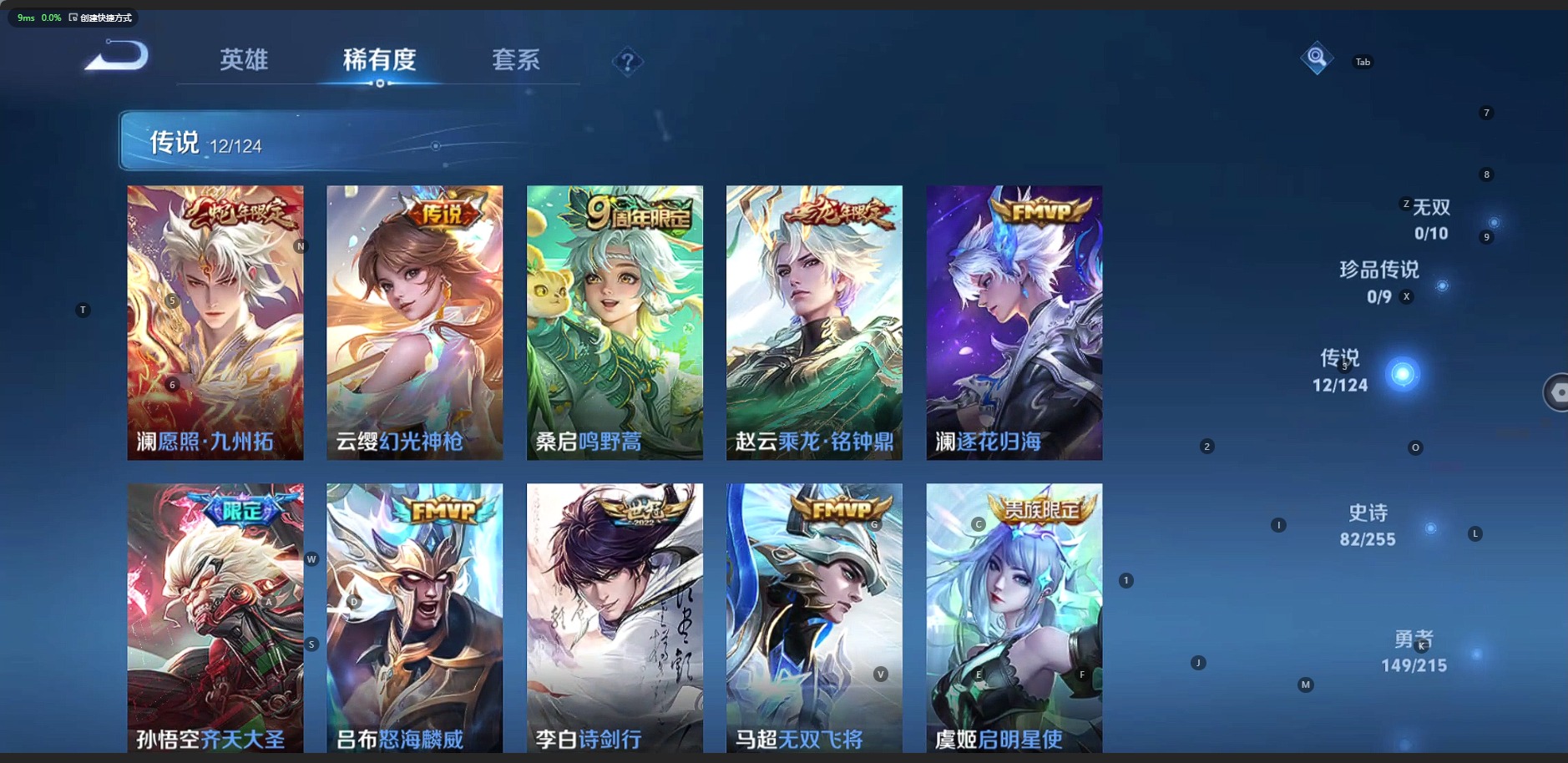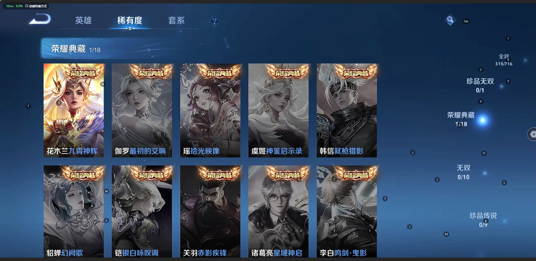 夏侯惇朔风刀,曹操烛龙,典韦穷奇,项羽苍威无极,镜青焰无极,裴擒虎擒涛扼浪,鲁班大师探海日志,明世隐疑决卦,鬼谷子原初探秘者,张良古海寻踪,桑启海盐诗旅,芈月重明,李元芳云中旅人,弈星混沌棋