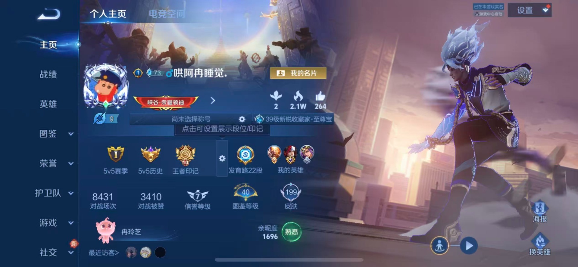 - PX_2102270-贵族等级: V4 英雄数: 60 皮肤数: 43 传说皮: 记忆之芯 限定皮: 鸣野蒿