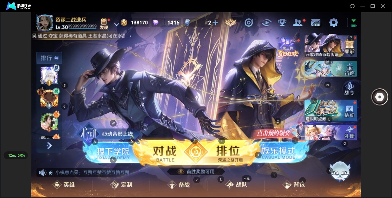 - [11592400]V4 3传说 123英雄 120皮肤 可修改实名 优质装备:冠军飞将,一念神魔 珍宝阁皮:蔷薇恋人 限定皮:鸣野蒿,五谷丰年 史诗皮:星界战将,蔬乡物语(鲁班七号),紫霞仙子,黄金分割率,特工魅影,江河有灵,蒙恬荣光圣徽,末日机甲-吕布,乱世虎臣,节奏热浪,水果甜心,天才门将,星夜王子,功夫厨神,德古拉伯爵,暗隐猎兽者,幽灵船长,鬼剑武藏,繁星吟游(呼啦呼啦),水晶猎龙者,金属风暴,鹰眼统帅,魅力维加斯,黎明之约