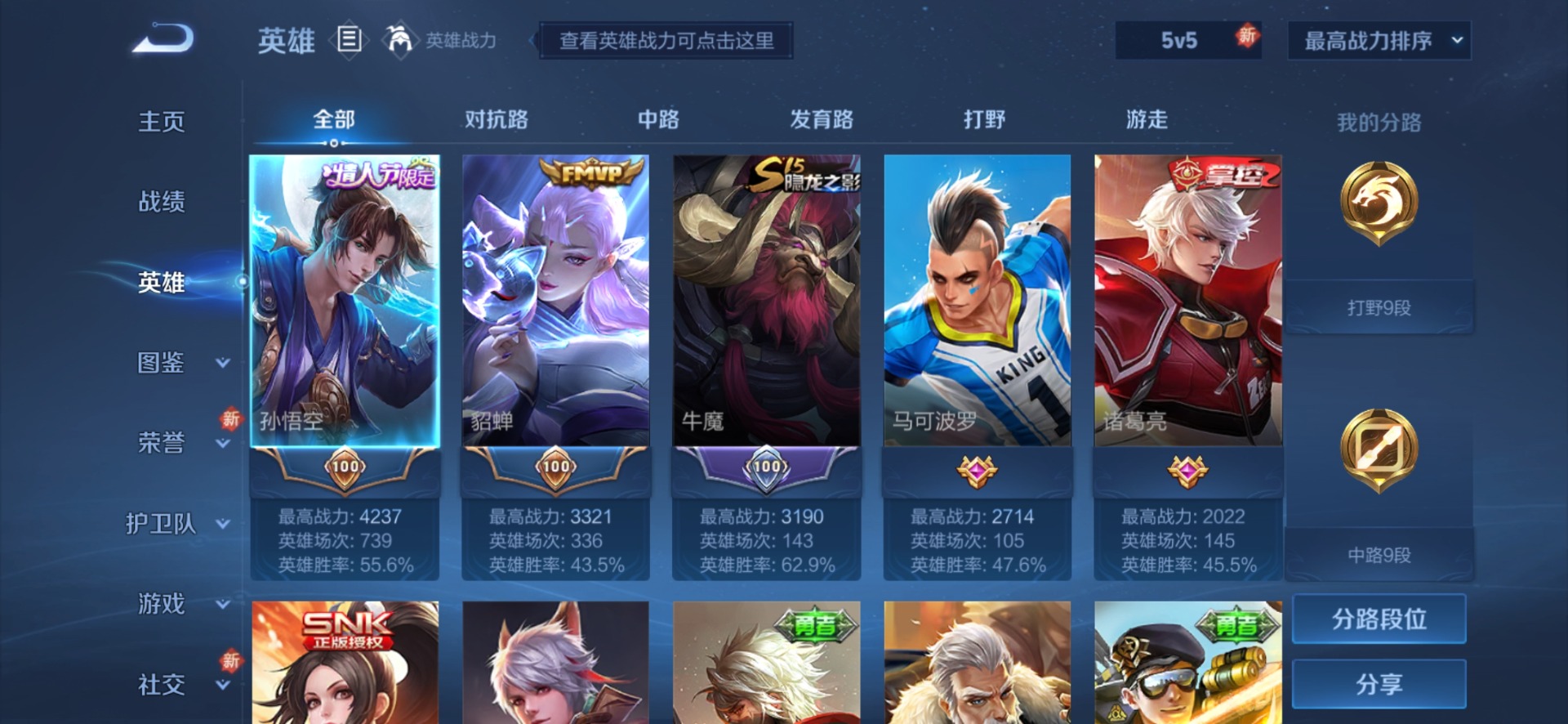 - [12058222]V7 1典藏 2传说 125英雄 163皮肤 可修改实名 优质装备:全息碎影(猴子典藏),涂山容容 珍宝阁皮:优雅恋人 限定皮:逐霄战戟,鸣野蒿,武陵仙君(小桃花),五谷丰年,游园惊梦,李小龙,逐梦之影 史诗皮:黄金分割率,特工魅影,千年之狐,偶像歌手,末日机甲-吕布,猫狗日记-孙策,修罗,水果甜心,绅士熊喵,功夫厨神,德古拉伯爵,幽灵船长,纤云弄巧,繁星吟游(呼啦呼啦),水晶猎龙者,金属风暴,鹰眼统帅,王者之锤,魅力维加斯