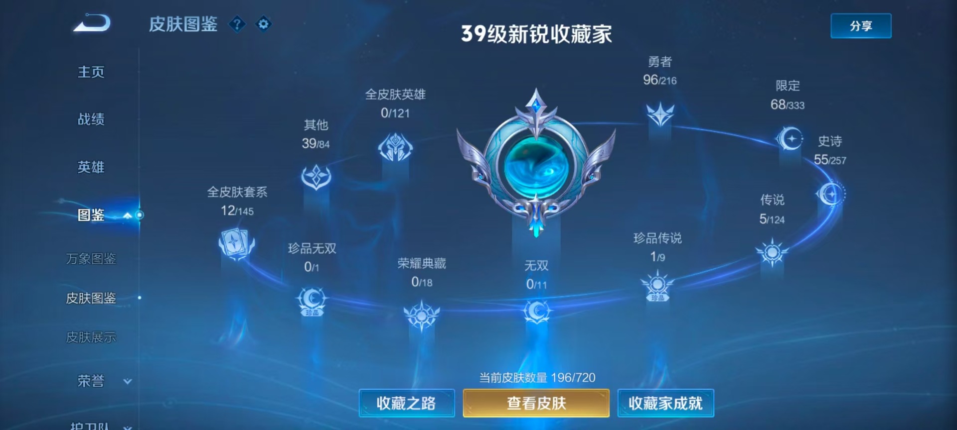 - [11607962]V9 2典藏 1无双 1珍品传说 29传说 124英雄 297皮肤 可修改实名 优质装备:全息碎影(猴子典藏),九霄神辉(木兰典藏),青丘·九尾(妲己无双),器灵·落星盏,黄金射手座,云鹰飞将(小将军),绛天战甲(鸡嘴战神),猫影幻舞,炽阳神光,一念神魔,末日机甲-孙尚香(绿蚂蚱),仲夏夜之梦(大飞蛾),零号·赤焰,地狱之眼,胖达荣荣,乞巧织情,淬星耀世,末日机甲-孙策,无双飞将,山海·炽霜斩(李信年限),山海·苍雷引(电光曜子),浮生妄,青丘·九尾,妄想奇谈 传说皮:续相思,星之鸣奏,幻光神枪 珍宝阁皮:玩趣恶龙 限定皮:愿照·岁时盈(虞姬年限),愿照·众生和(妲己年限),愿照·千秋盛(女娲年限),鸣野蒿,至尊宝,傲雪梅枪,神威(电光马子),飞衡(韩信年限),齐天大圣,降魔,五谷丰年,青龙志(铠年限),梁祝,御风骁将(吕布年限),龙胆,朱雀志(守约年限),孙行者,大圣娶亲,引擎之心,乒乒小将,美猴王,深海之息(深海大菠萝),山海·玄木吟(马可年限) 史诗皮:器灵·浮梦炉,龙之律动,紫霞仙子,苍穹之光,电玩小子(小书包),黄金分割率,特工魅影,千年之狐,永昼,江河有灵,百解令(蒙犽),蒙恬荣光圣徽,无限星赏官,冰冠公主,青蛇,偶像歌手,白蛇,晚萤,末日机甲-吕布,猫狗日记-孙策,猫狗日记-大乔,时之恋人-孙尚香,乱世虎臣,节奏热浪,修罗,女仆咖啡,摇滚巨星,水果甜心,绅士熊喵,天才门将,星夜王子,心灵骇客,功夫厨神,德古拉伯爵,暗隐猎兽者,幽灵船长,鬼剑武藏,心灵战警,舞动绿茵,地狱岩魂,缤纷独角兽,乘风破浪,逐浪之夏,月团寄思,水晶猎龙者,曙光守护者,箭羽风息,金属风暴,原初追逐者,圣诞狂欢,圣诞恋歌,鹰眼统帅,暗夜贵公子,魅力维加斯,赏金猎手,天秀·音浪,千筹问战,无心,未来纪元-赵云
