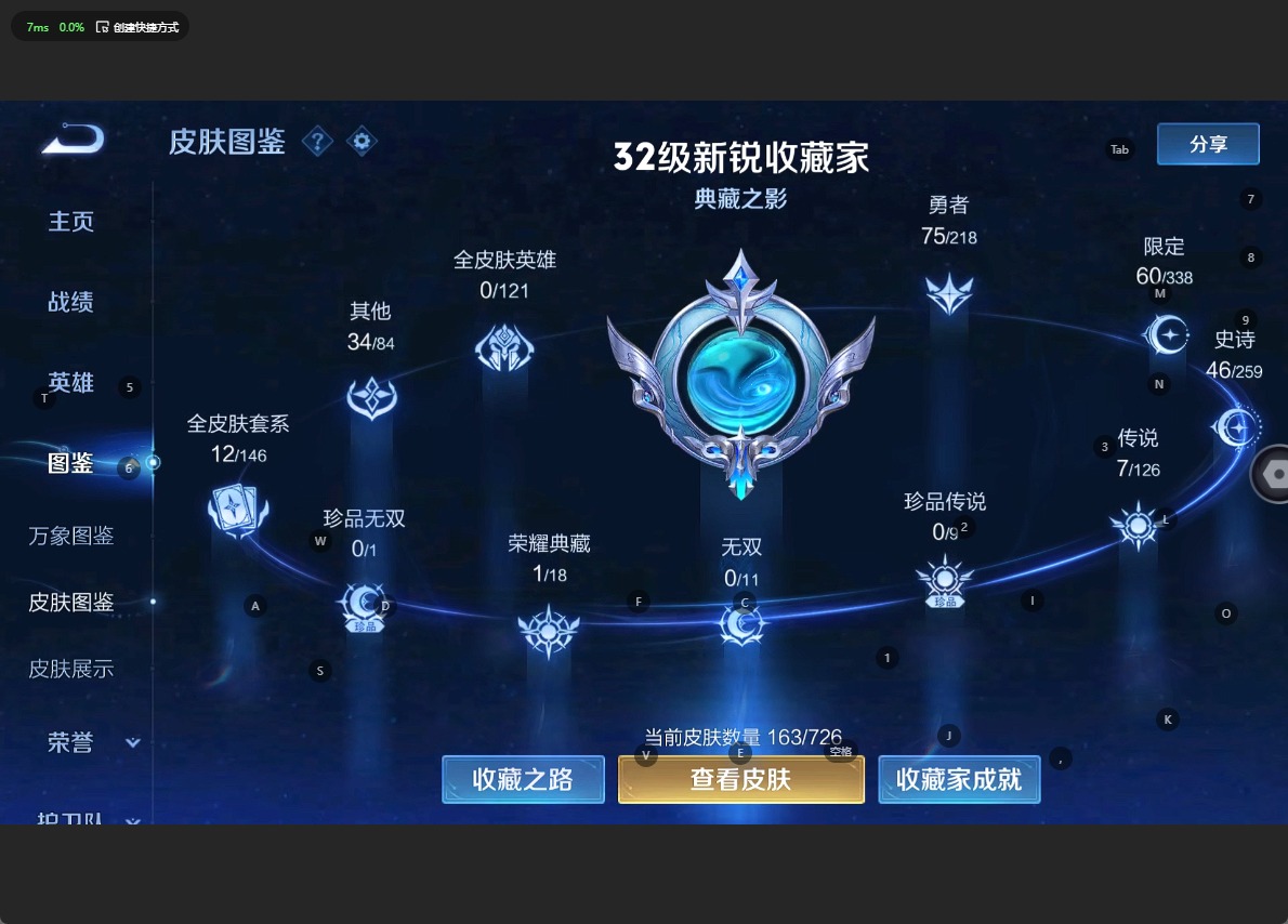 [11297197]V7 1典藏 7传说 123英雄 163皮肤 可修改实名 优质装备:星域神启(倪克斯贼亮),地狱火,零号·赤焰 传说皮:云诺千山 珍宝阁皮:玩趣恶龙 限定皮:陌上桑,鸣野蒿,至尊宝,时雨天司(水龙头),齐天大圣,降魔,五谷丰年,游园惊梦,李小龙,辉光之辰,大圣娶亲,枫霜尽 史诗皮:龙之律动,谪仙醉月,破空之剑,怒海争锋,百相守梦-黄忠,黄金分割率,特工魅影,江河有灵,百解令(蒙犽),魅语,冰冠公主,青蛇,末日机甲-吕布,猫狗日记-孙策,水果甜心,心灵骇客,功夫厨神,德古拉伯爵,暗隐猎兽者,幽灵船长,鬼剑武藏,心灵战警,地狱岩魂,缤纷独角兽,乘风破浪,水晶猎龙者,曙光守护者,鹰眼统帅,魅力维加斯
