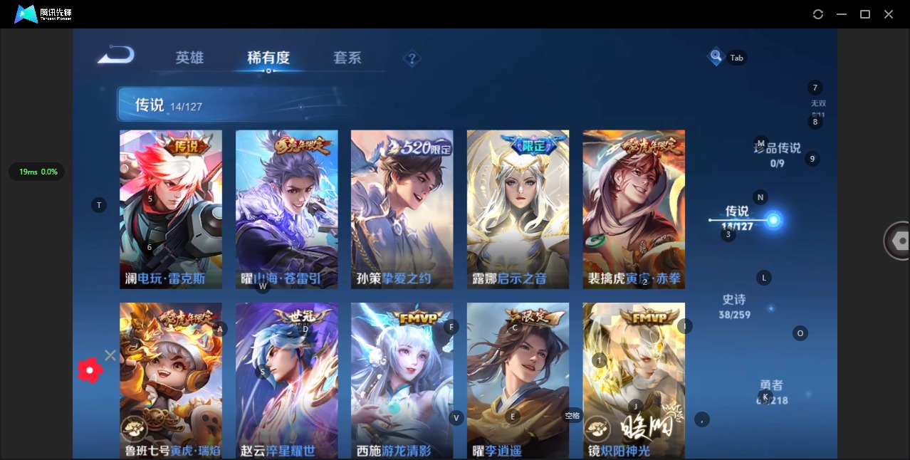 - [11966835]V7 7传说 124英雄 232皮肤 可修改实名 优质装备:黄金狮子座,久胜战神,一念神魔,无双飞将 珍宝阁皮:妄想食味,女武神,玩趣恶龙 限定皮:鸣野蒿,凤求凰(白切鸡),遇见飞天,高山流水,五谷丰年,冰锋战神,游园惊梦,梁祝,龙胆,李小龙,永曜之星 史诗皮:星界战将,紫霞仙子,白龙吟,特工魅影,千年之狐,江河有灵,蒙恬荣光圣徽,无限星赏官,偶像歌手,电玩·爆裂旋风,末日机甲-吕布,猫狗日记-孙策,乱世虎臣,修罗,摇滚巨星,水果甜心,天才门将,心灵骇客,功夫厨神,德古拉伯爵,暗隐猎兽者,鬼剑武藏,暗渊魔法,心灵战警,乐园奇幻夜,地狱岩魂,纤云弄巧,繁星吟游(呼啦呼啦),拒霜思,缤纷独角兽,乘风破浪,逐浪之夏,水晶猎龙者,曙光守护者,金属风暴,原初追逐者,圣诞狂欢,鹰眼统帅,魅力维加斯,黎明之约,无心