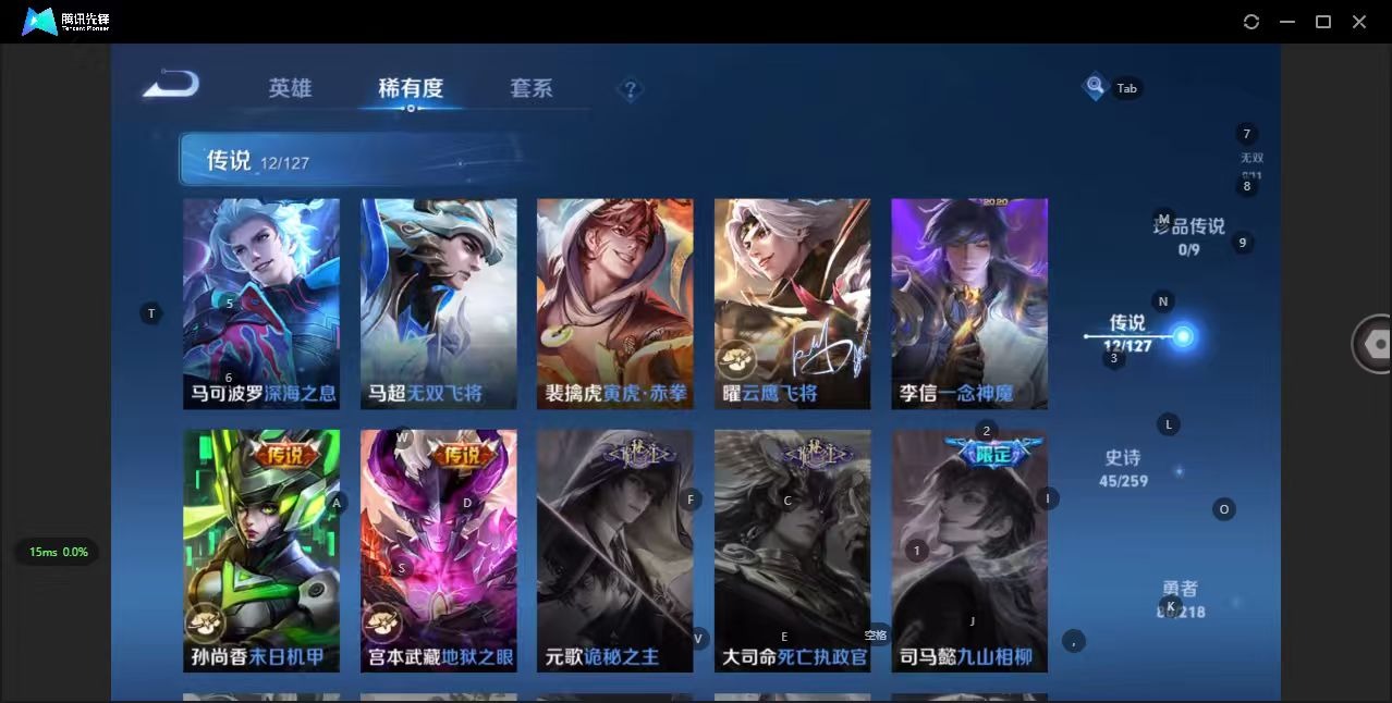 - [11685142]猴子典藏,久胜,紫霞,-可二次-108英雄-165皮肤-1典藏-7传说-31史诗 辉光之辰-后羿 街头霸王-韩信